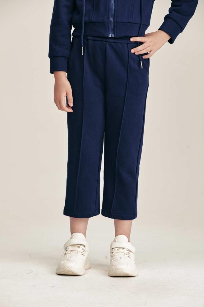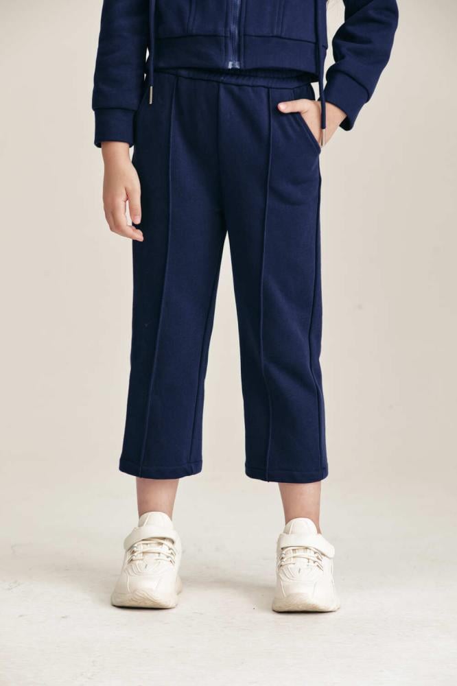 بنطلون رياضي عملي بخصر مطاطي مريح. تصميم بجيوب جانبية يضيف لمسة عملية لإطلالة صغيرتك. قطعة مثالية للتنسيق مع الهودي لإطلالة رياضية متكاملة وعصرية.