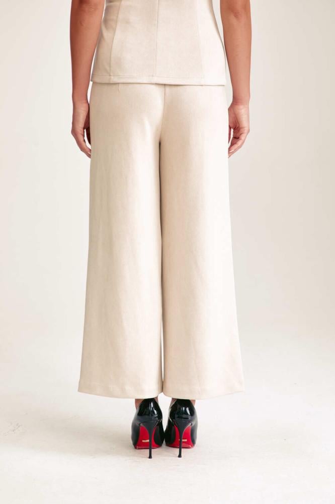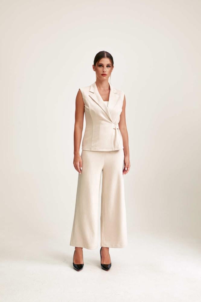 لإطلالة كلاسيكية متفردة، بنطلون أنيق بقصة واسعة ، ويأتي بتصميم بخصر مرتفع ، وبسحاب للإغلاق