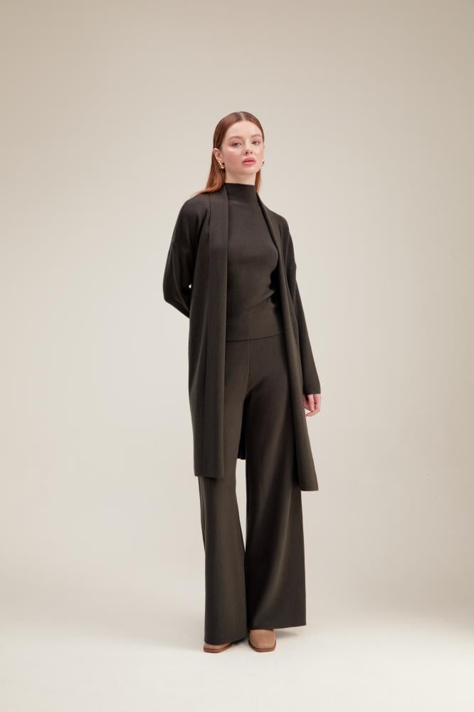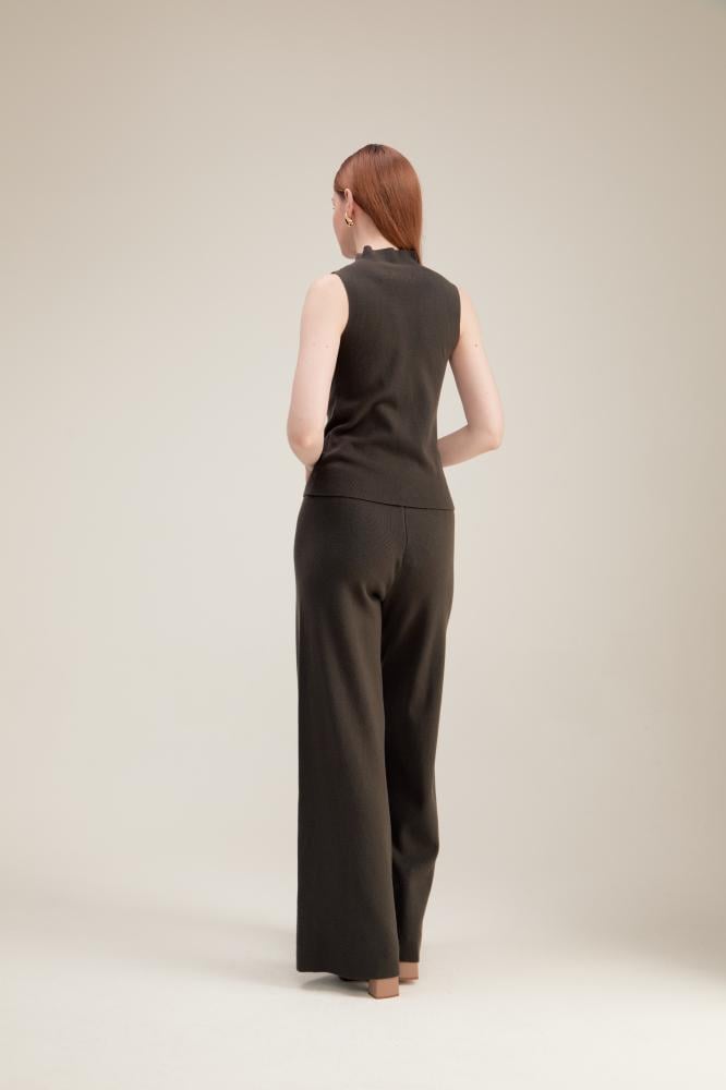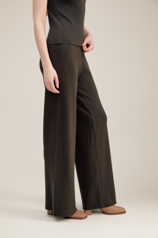 بنطلون محبوك يمنحك الدفء في الأيام الباردة، بتصميم مريح بلون محايد و يتميز بخصر مطاطي وبأرجل واسعة