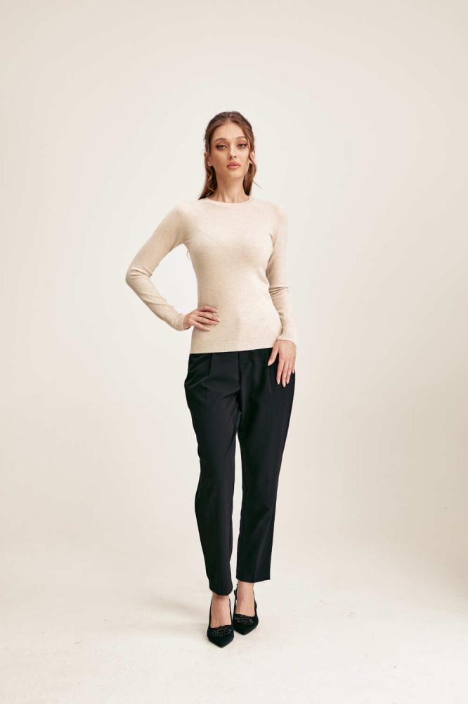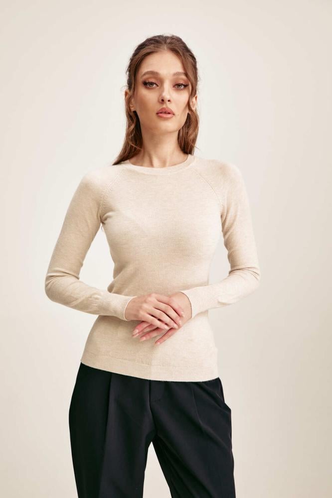 أضيفي هذه البلوزة الأساسية المصممة بأكمام طويلة إلى خزانتك ، بتصميم محبوك ومريح بقصة ضيقة كما يمكنك تنسيقها مع مختلف الملابس لإطلالتك في موسم الشتاء