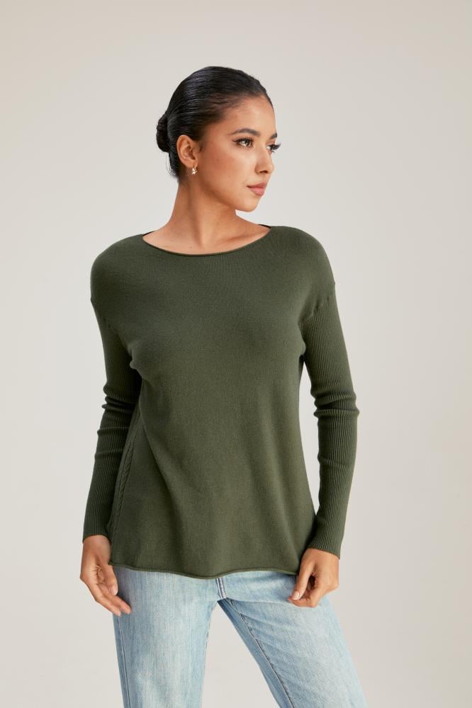 اقتني هذه البلوزة الشتوية للتألقي بإطلالة ناعمة . مصممة بقصة واسعة غير متساوية من أسفل ، وتتميز بأكتاف منسدلة وأكمام ضيقة نسقيها مع بنطلون جينز لمظهر عصري
