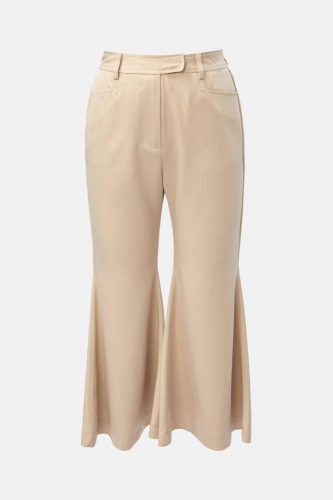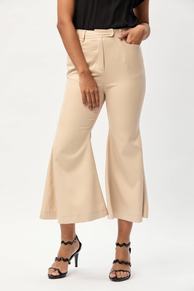بنطلون أنيق بقصة ساق واسعة من الأسفل تجمع بين الطابعين الكلاسيكي والعصري. ويتميز بخصر مرتفع وبجيوب وسحاب مخفي للإغلاق ، نسقية مع جاكيت لإطلالة كلاسيكية ساحرة.