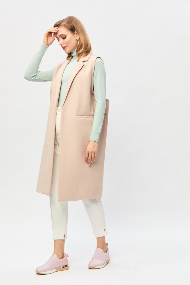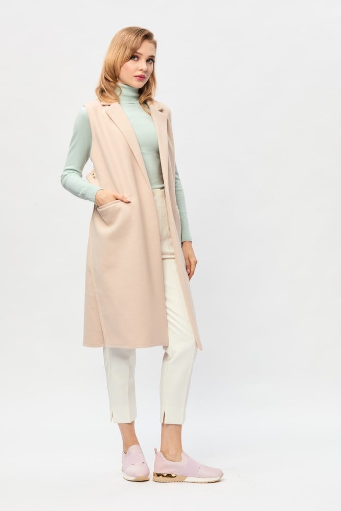 يمنحك هذا الجاكيت الكلاسيكي الدفء والأناقة، يتميز بقصة مفتوحة بأزرار جانبية تكسبه طابعًا عمليًا ، بتصميم بدون أكمام ومزين بجيوب ، نسقيه مع بلوزة بياقة عالية لمظهر جذاب
