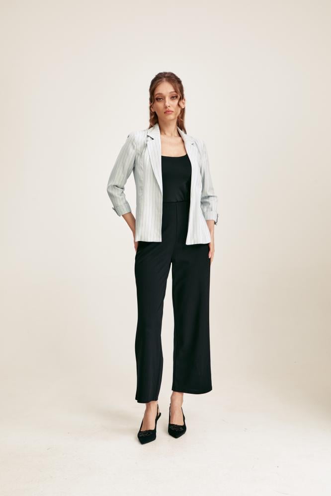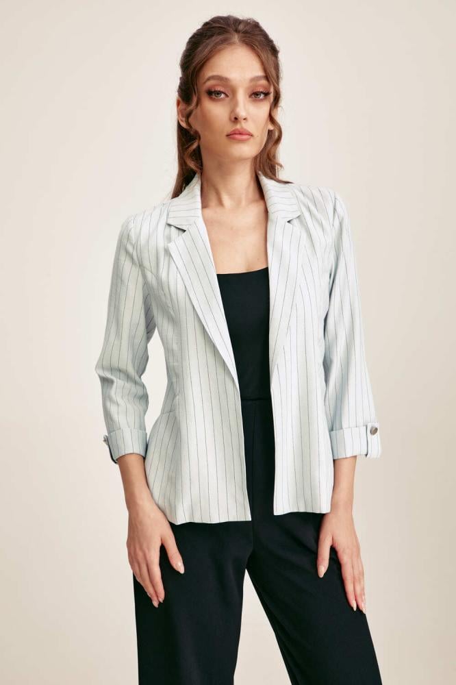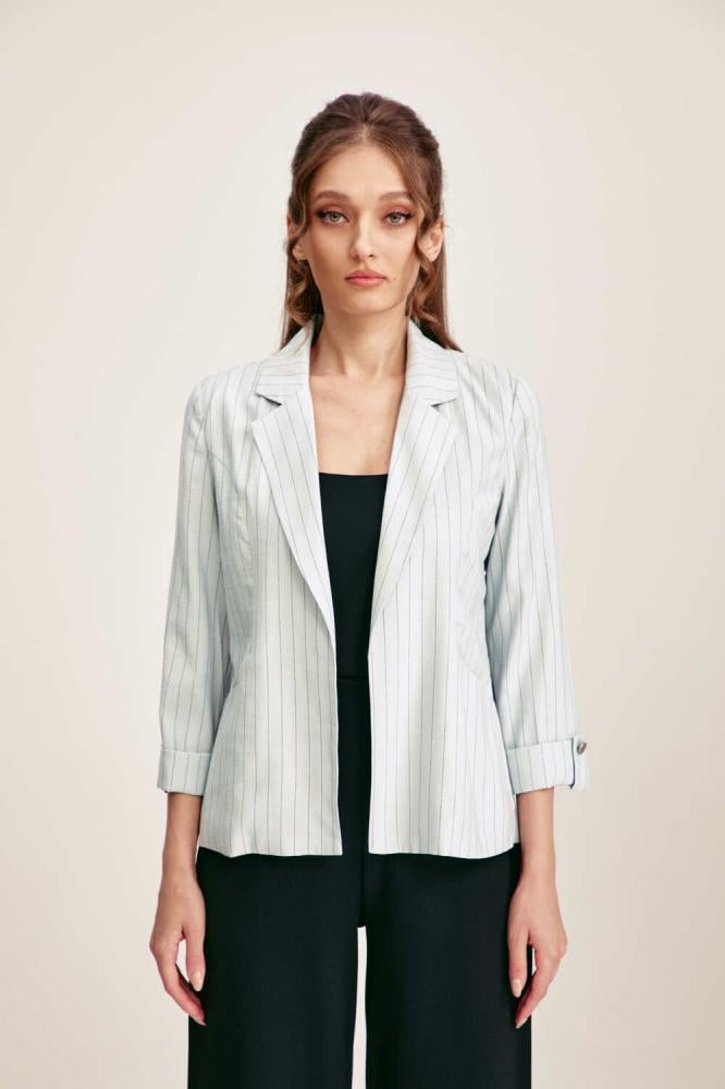 لإطلالة رسمية كلاسيكية ؛ جاكيت بليزر بتصميم يناسب أوقاتكِ النهارية المختلفة، يتميز بقصة مفتوحة وبأكمام متوسطة الطول مزينة بأزرار، يمكنك تنسيقة مع تنورة لمظهر شيك وعملي