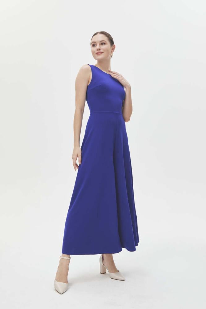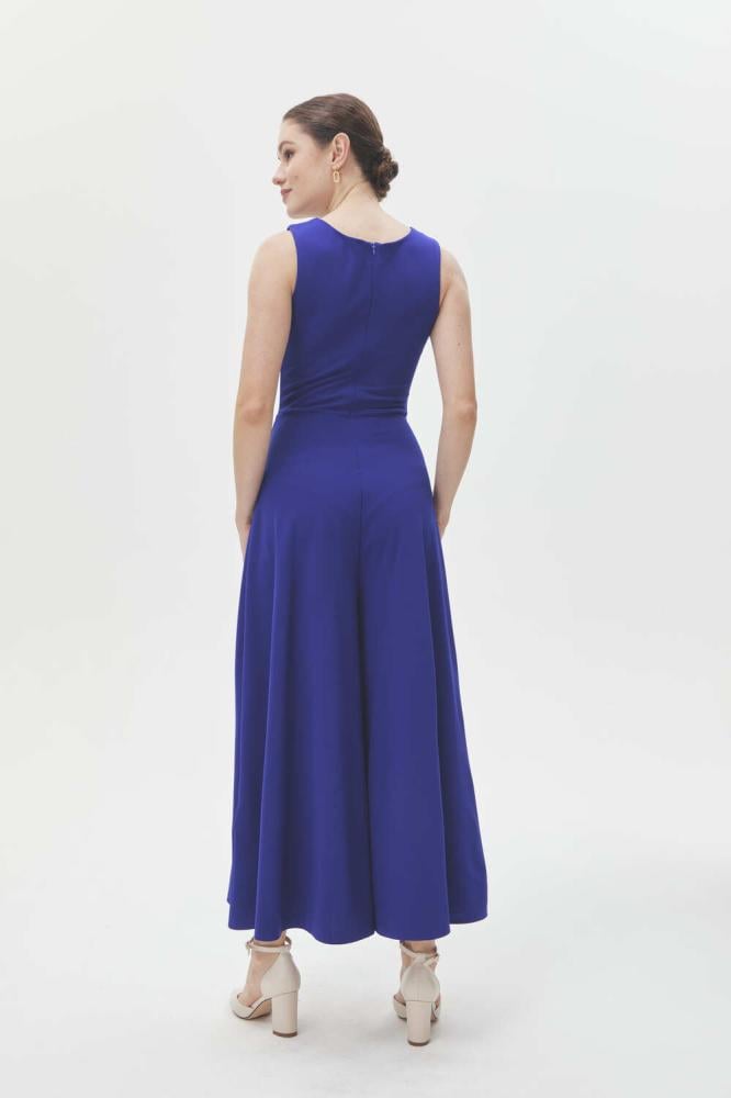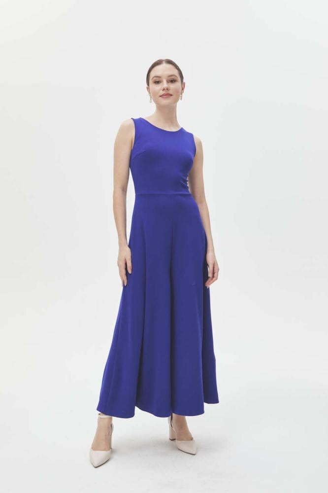 احصلي على إطلالة تفيض بالرقي والأناقة مع هذا الجمبسوت ، بتصميم بياقة مستديرة وبدون أكمام ويأتي بقصة جذابة مفعمة بالأنوثة .