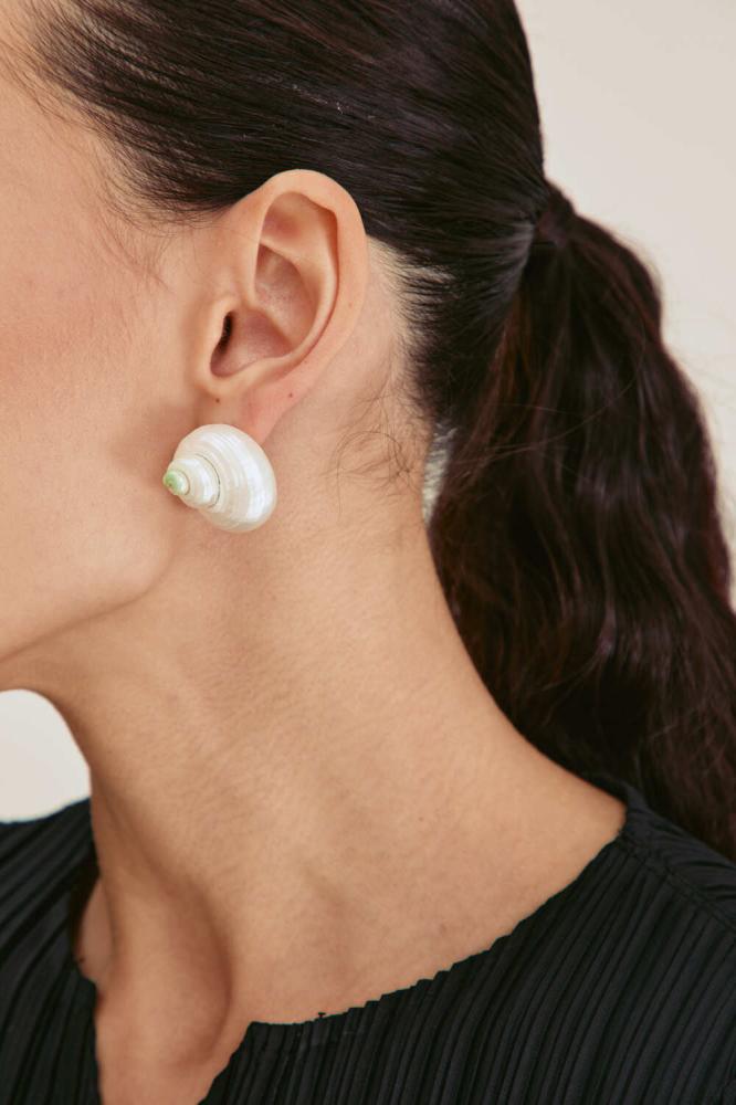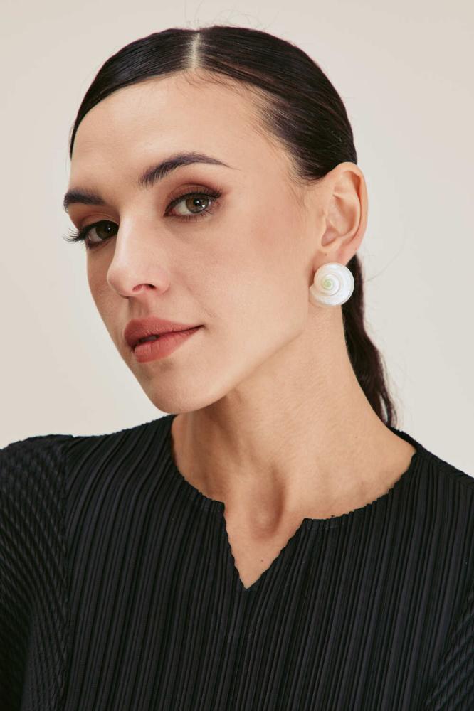 أقراط أنيقة على شكل صدف الحلزون الطبيعي، تمنحك لمسة راقية مستوحاة من جمال البحر، كما تغلق بالكبس في الخلف لسهولة الارتداء.