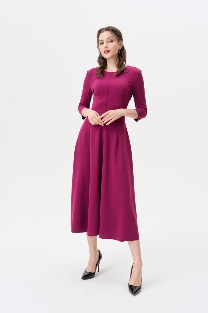 لإطلالتك في المناسبات المميزة، فستان يجمع بين الفخامة والأنوثة بلون ساحر بتصميم بياقة مستديرة وبأكمام متوسطة الطول ، وبقصة تبرز جمال قوامك