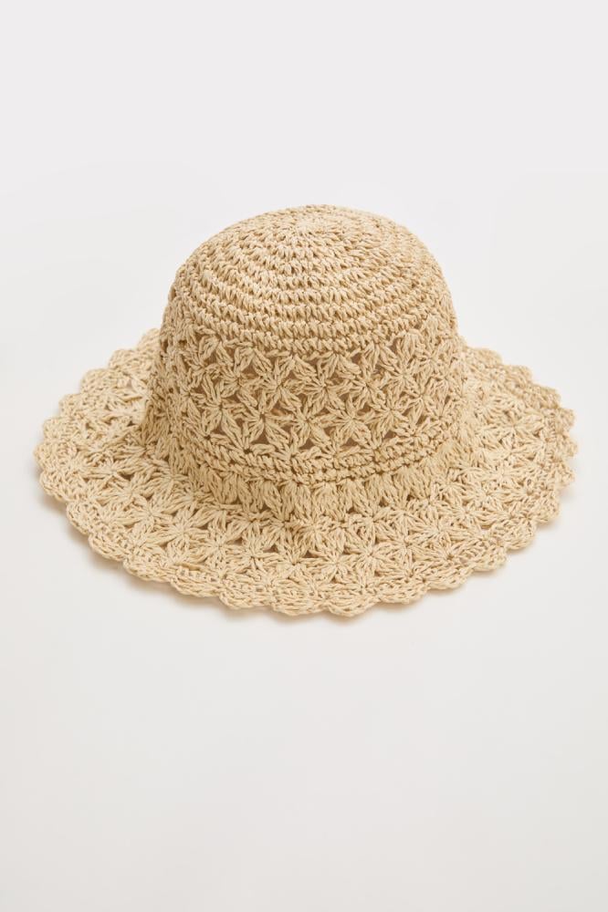 أضيفي لمسة أناقة إلى إطلالتك الصيفية مع قبعة محبوكة من الخوص بتصميم كلاسيكي و حافة عريضة لحماية العينين من أشعة الشمس، نسقيها مع فستان طويل في العطلة القادمة.