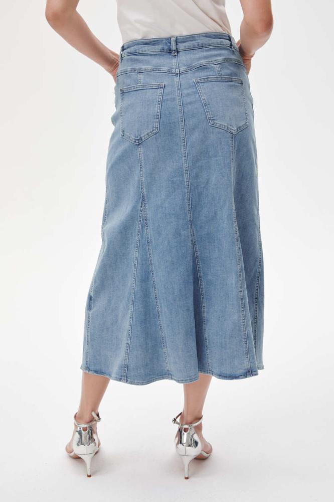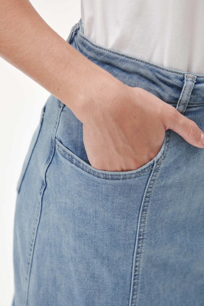 تنورة دينم بتصميم عملي وعصري، بسحاب أمامي وجيوب ، تأتي بقصّة واسعة من الأسفل تمنح حرية في الحركة وطابعاً أنيقاً. مثالية لإطلالة كاجوال متجددة