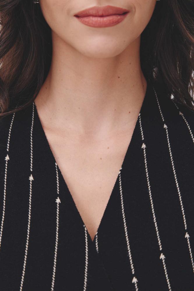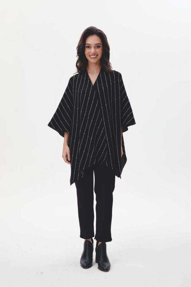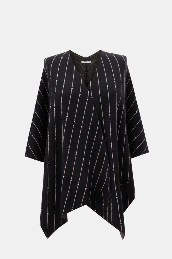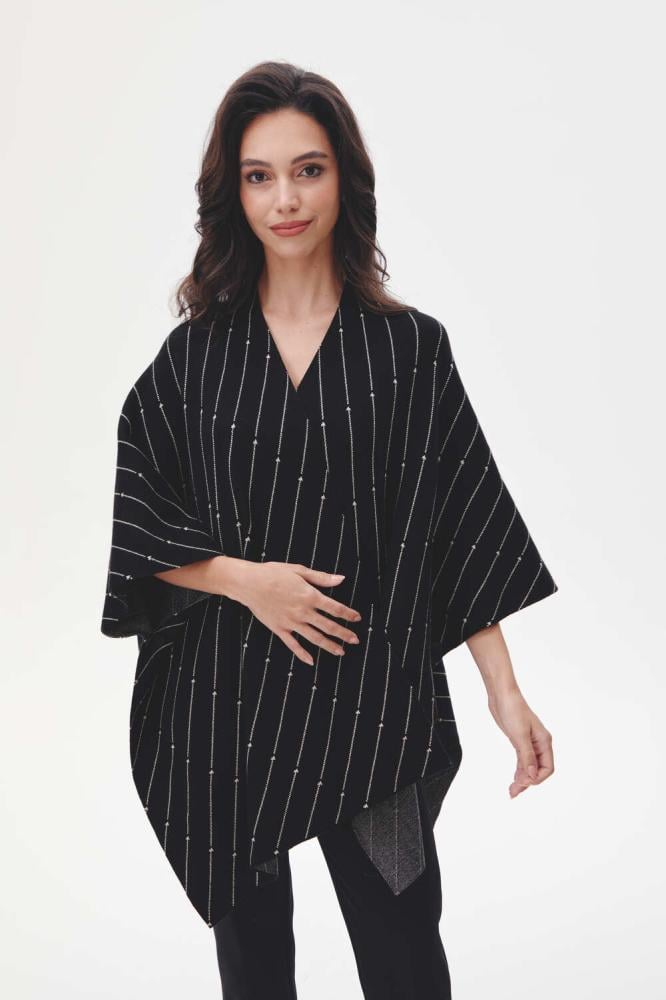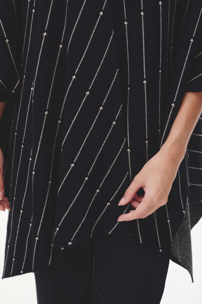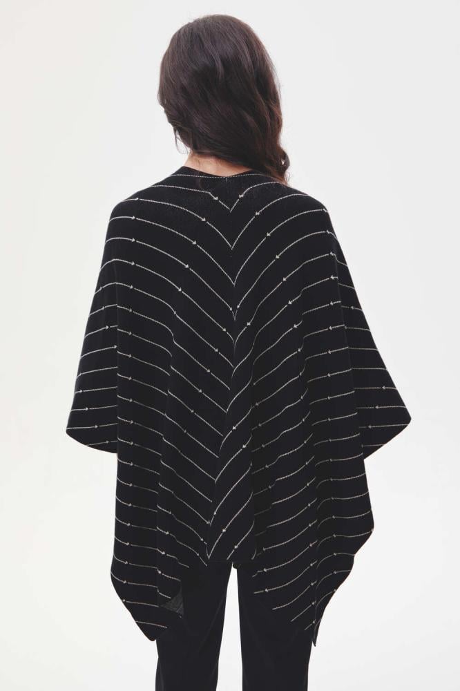 كارديغان محبوك بتصميم بونشو بتصميم بقصة فضفاضة مزين بنقشة مخططة ، ويتميز بأكمام بطول المرفقين وتصميم مفتوح من الأمام ليمكنك من ارتداؤه فوق غيره من القطع.
