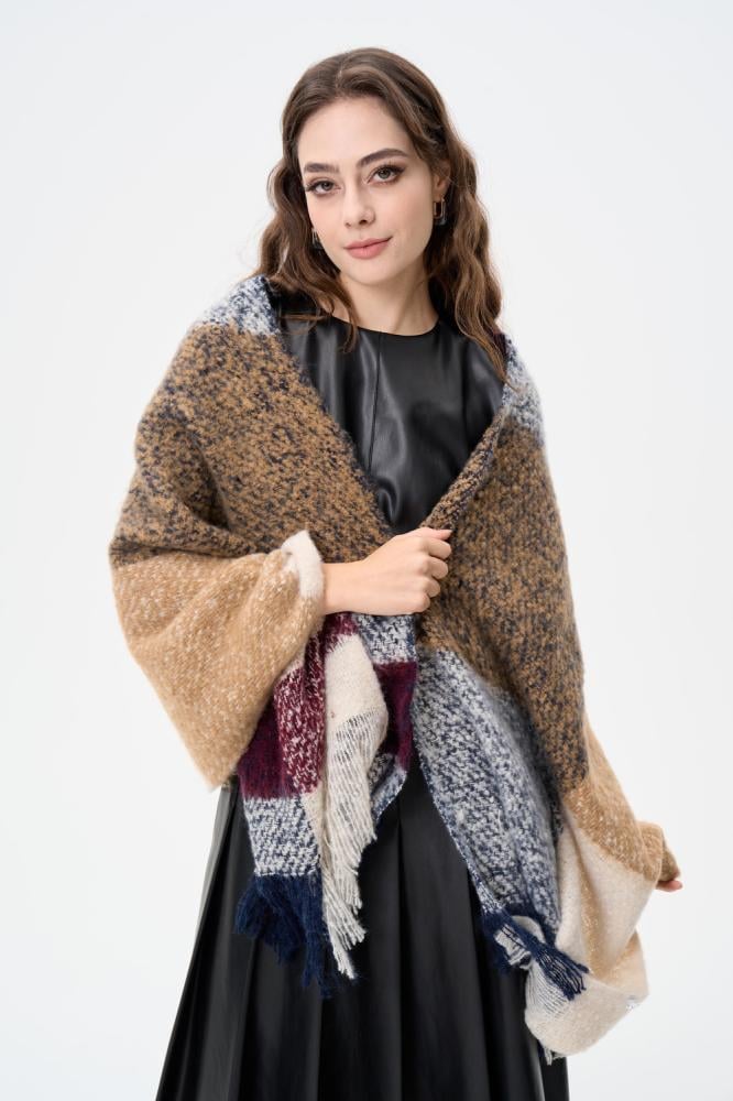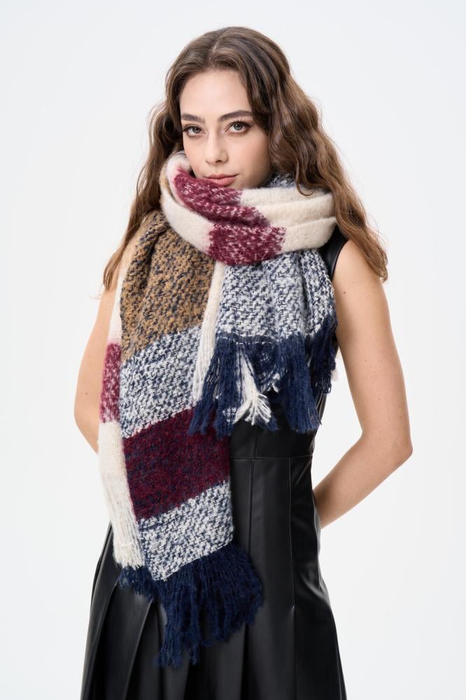 وشاح شتوي بستايل أنيق ،بتصميم مزين بالشراشيب قطعة مميزة وأنيقة مثالية لتنسيقها مع الإطلالات الشتوية خامة ناعمة ودافئة مزينة بطبعات ملونة تفاصيل شراشيب على الأطراف
