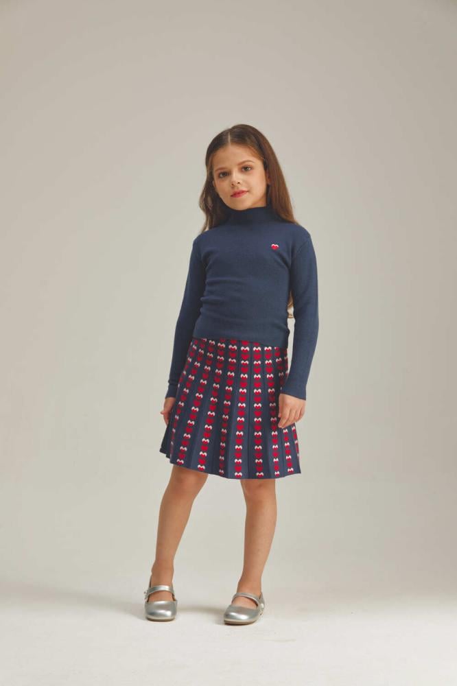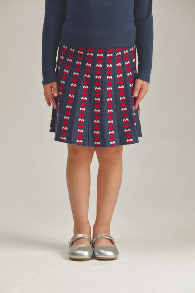 اجعلي صغيرتكِ تتألق بإطلالة جميلة في الشتاء ، باقتناء هذه التنورة الأنيقة، مصممه بخصر مطاطي وبقصة واسعة ومزينة بنقوش على شكل قلوب