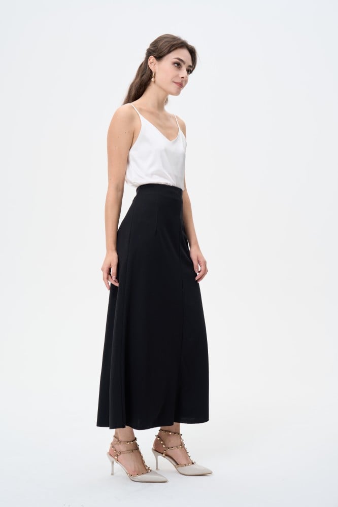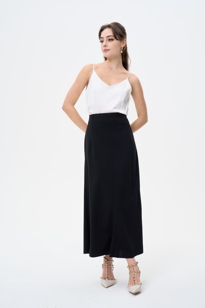 أكملي أناقة إطلالتك مع هذه التنورة المصممة بخصر مرتفع بسحاب مخفي للإغلاق وبقصة على شكل حرف A ، نسقيها مع بلوزة للوك ساحر