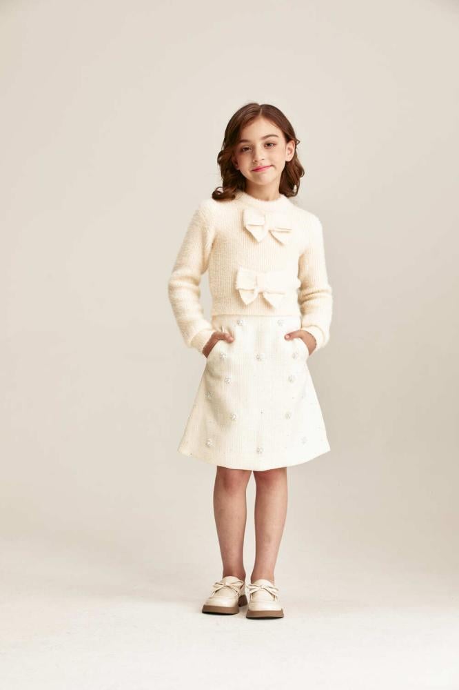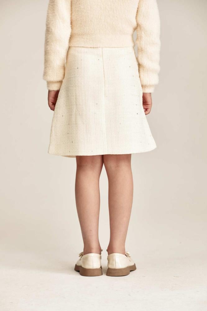 أضيفي لمسة فاخرة لإطلالة صغيرتك مع هذه التنورة المصنوعة من التويد الفاخر، المزينة باللؤلؤ اللامع. تفاصيل الترتر يضيف بريقًا جذابًا تصميم أنيق ومريح يجعلها مثالية للمناسبات في الشتاء.