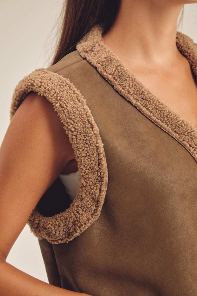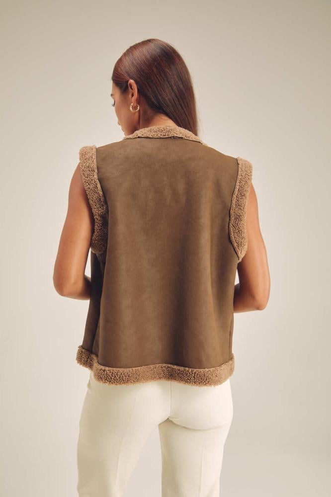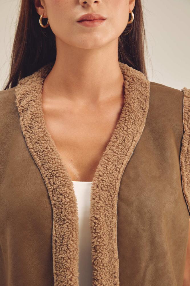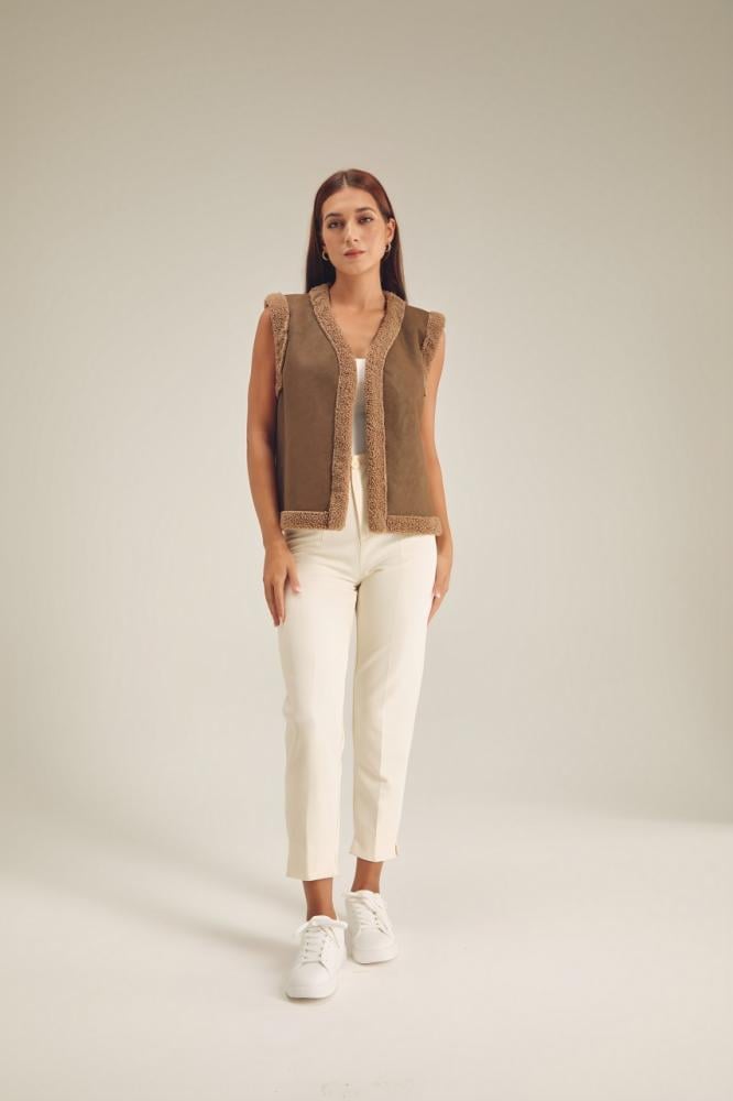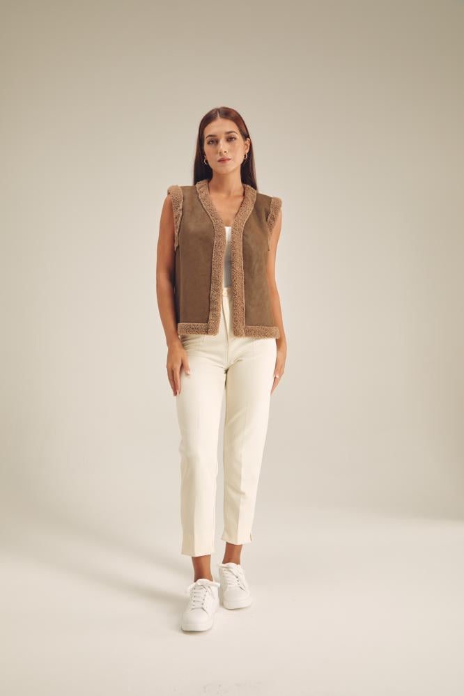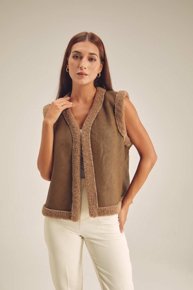 سيكون هذا الجاكيت خيارًا أنيقًا لإطلالتك في الشتاء ، بتصميم بلا أكمام وبقصة مفتوحة من الأمام ويأتي مُبطن بالصوف ليمنحك الشعور بالدفء. ويمكن تنسيقه مع بنطال أو تنورة لإطلالات متنوعة.