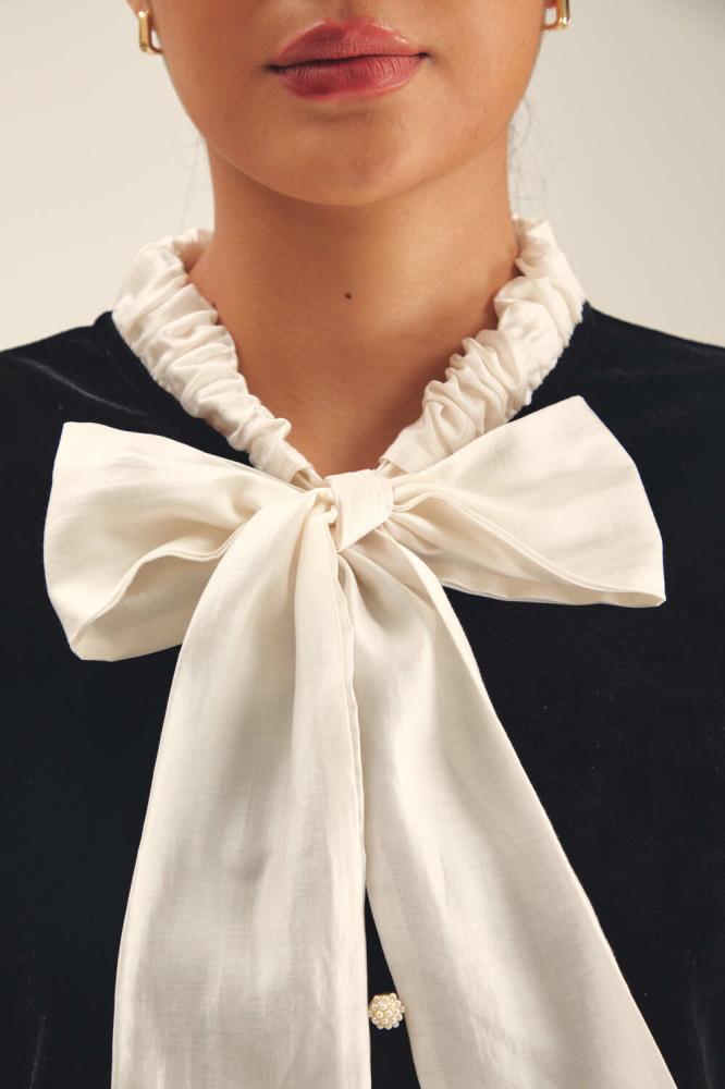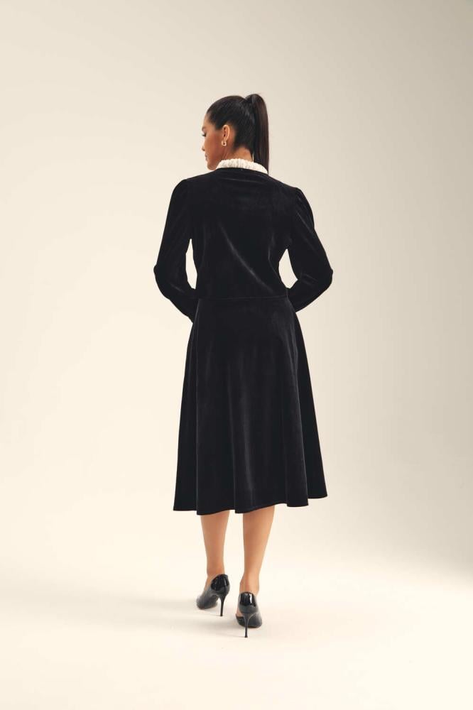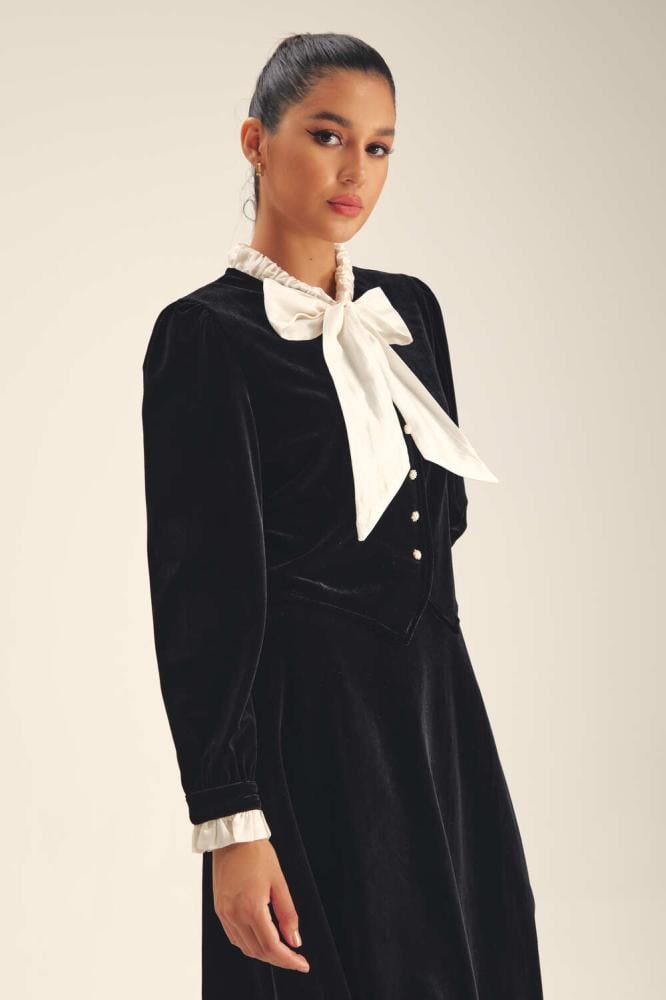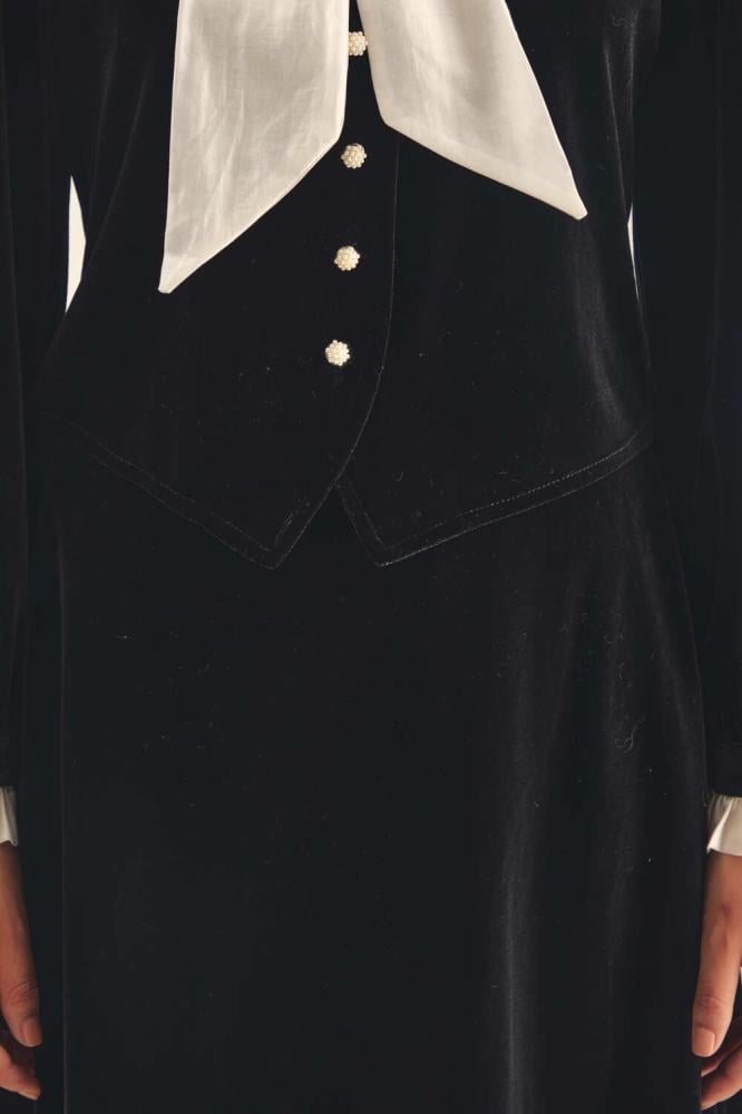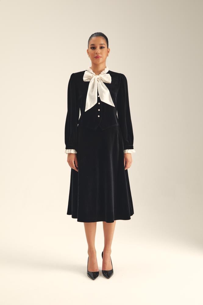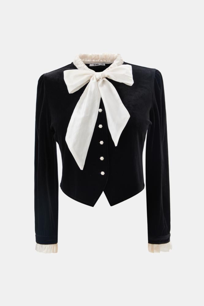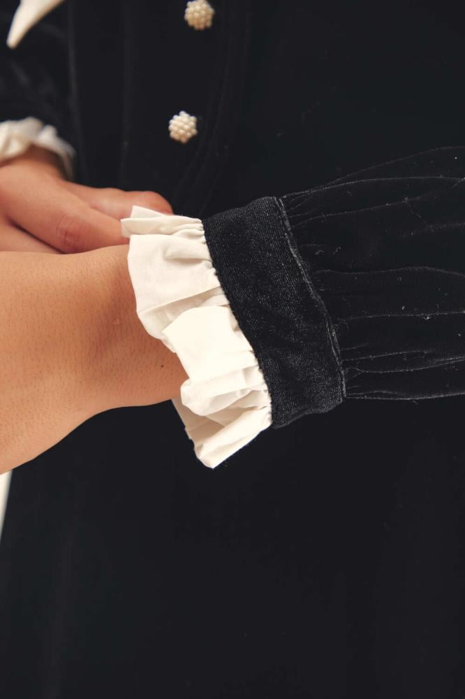 انعمي بإطلالة تنبض بالفخامة مع هذا الجاكيت المخمل ، حيث يأتيك بقصة مربعة وصف أزرار ويتميز بياقة بثنيات وأساور كشكش بأزرار. يتميز الجاكيت بتصميم كلاسيكي أنتيك لا يفقد رونقه بمرور الوقت.