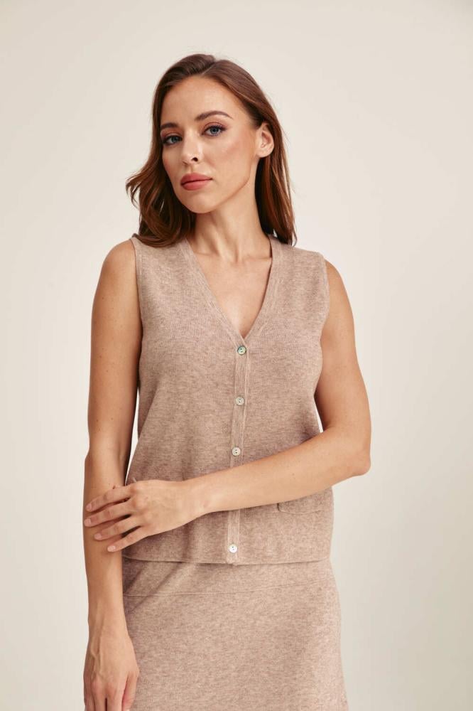 جاكيت بلا أكمام ، بتصميم كلاسيكي بلمسة عصرية. بتميز بأزرار اغلاق تضفي مظهراً أنيقاً وعصرياً يناسب الإطلالات الرسمية والكاجوال، بمكنك تنسيقة مع تنورة مماثله لمظهر جذاب