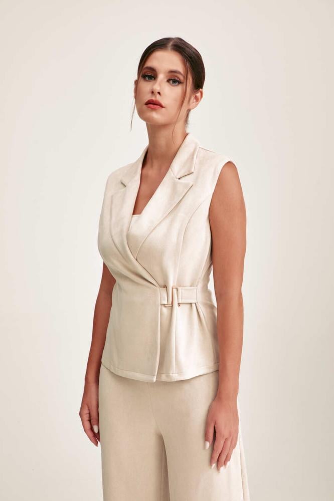 احصلي على إطلالة مريحة وأنيقة في فصل الشتاء عند ارتداء جاكيت شامواة يضمن لك الشعور بالدفء والراحة. ويتميز بقصة أنيقةبإبزيم جانبي للإغلاق