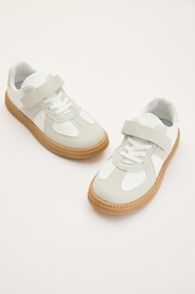 حذاء رياضي للبنات بتصميم أنيق مثالي لأيام المدرسة واللعب والمشاوير اليومية، مع شريط لاصق لسهولة الارتداء، ونعل مطاطي يوفر ثباتًا مريحًا طوال اليوم.