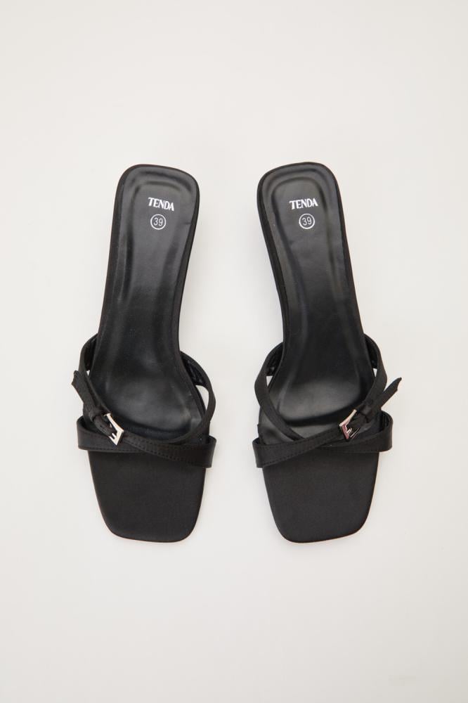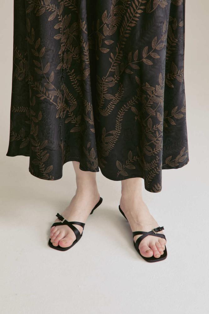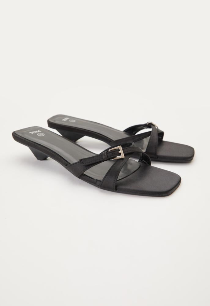 احصلي على إطلالة أنيقة مع هذا الحذاء المفتوح بتصميم بكعب مسطح ومزين بإبزيم معدني