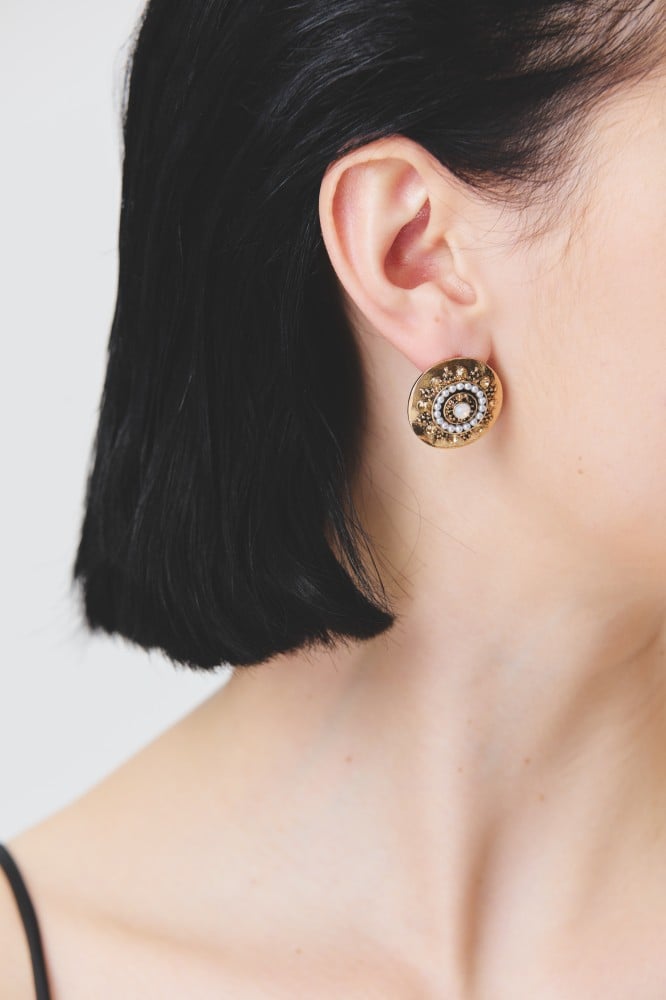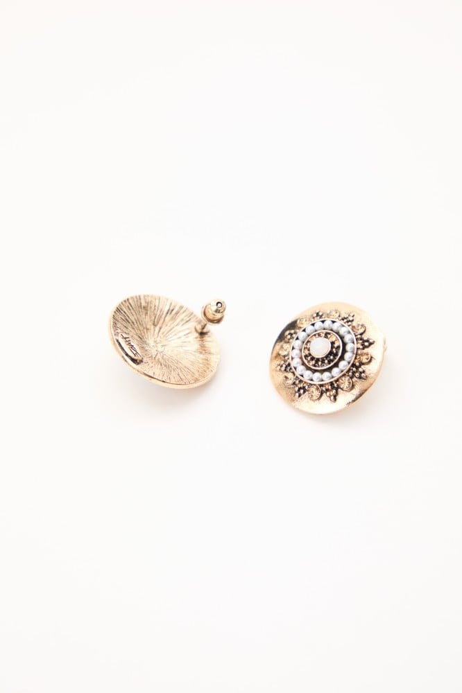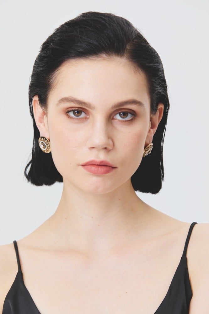 ارتقي بأناقة مظهرك بهذا الزوج الجذّاب من الحلقان المزينة. مزين بزخارف دقيقة، مصمم بشكل دائريي وبمكبس إغلاق خلفي.