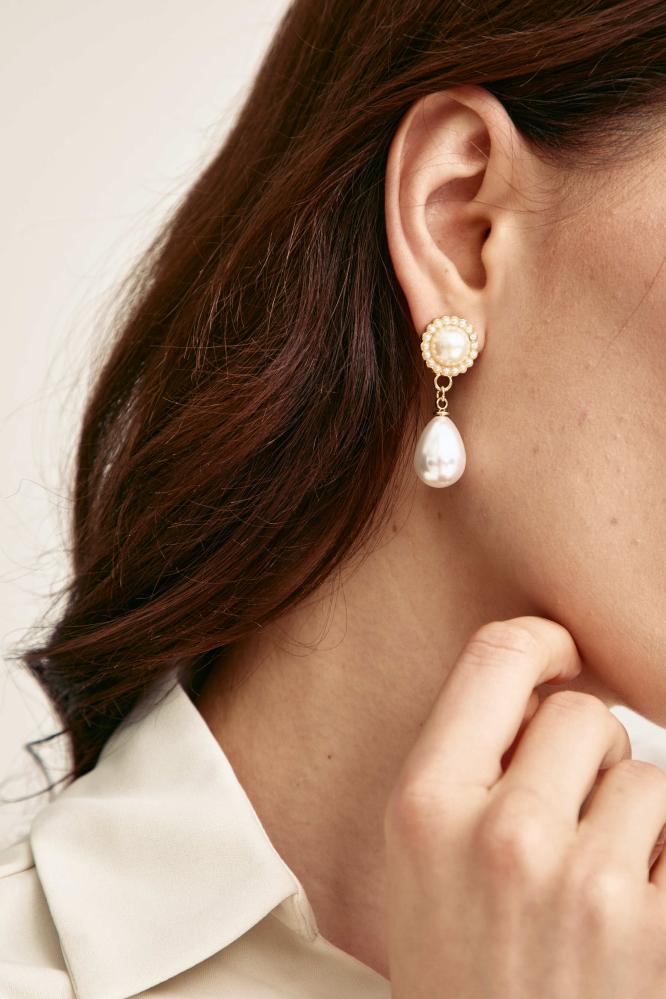 حلق متدلي أنيق مزين بحبة تمنحك لمسة كلاسيكية فاخرة تناسب الإطلالات اليومية والمناسبات الخاصة. تصميم بسيط يعكس جمال الأنوثة.
