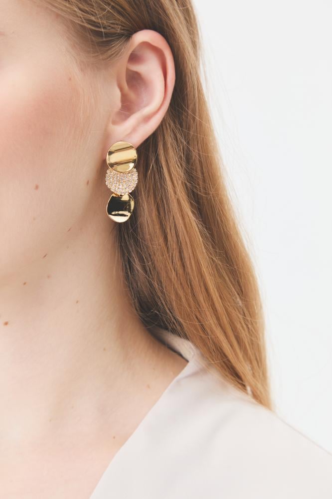 أضيفي هذا الحلق الرائع إلى اكسسواراتك الأنيقة، يتميز بتصميم على شكل دوائر متعددة ومرصع بأحجار براقة وبمكبس إغلاق خلفي ،يمكن تنسيقه مع ملابس متنوعة. ، رمز المنشأ :ER23306 ، رمز خاص : 24SS2ACC