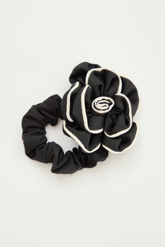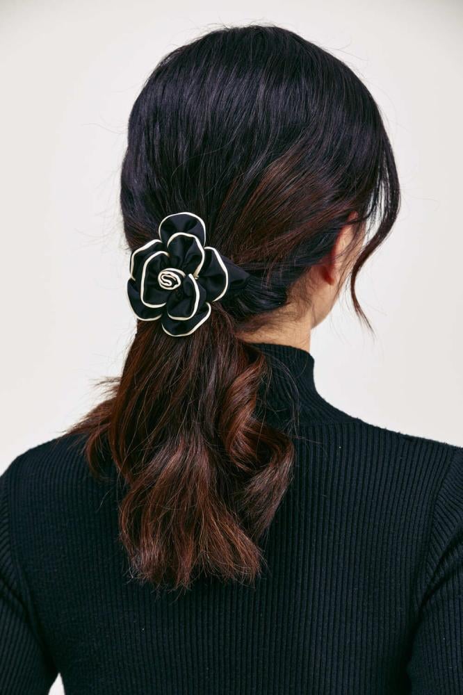 ربطة شعر بلونين مزينة بوردة أنيقة تضفي لمسة فاخرة. تصميم مرن ومريح يثبّت الشعر بلطف ويكمّل إطلالتك