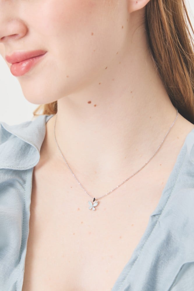 أضيفي لمسة براقة رقيقة إلى إطلالتك مع هذا العقد الناعم بتصميم مزين بتعليقة وبإبزيم للإغلاق