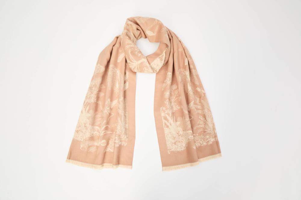وشاح شتوي بستايل أنيق قطعة مميزة وأنيقة مثالية لتنسيقها مع الإطلالات الشتوية خامة ناعمة ودافئة مزينة بطبعة مشجرة تفاصيل شراشيب على الأطراف