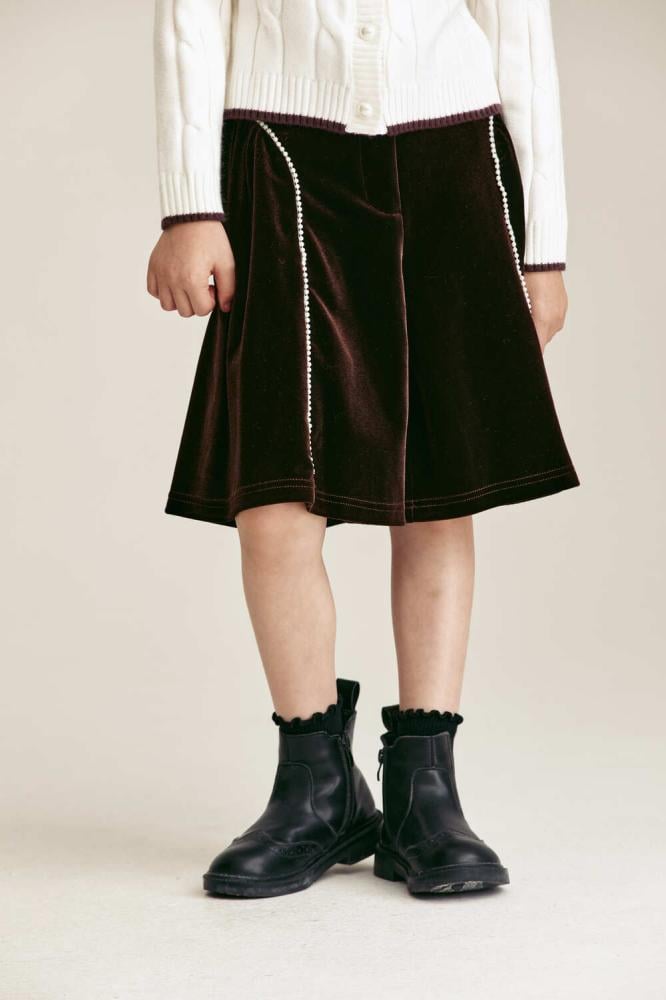 امنحي صغيرتك لمسة فاخرة مع هذا الشورت الأنيق ، مزين باللؤلؤ اللامع والطيات الجانبية التي تضيف حركة وأناقة مزود بسحاب مخفي لتسهيل اللبس، بتصميم يجمع بين الفخامة والدفء لموسم الشتاء.