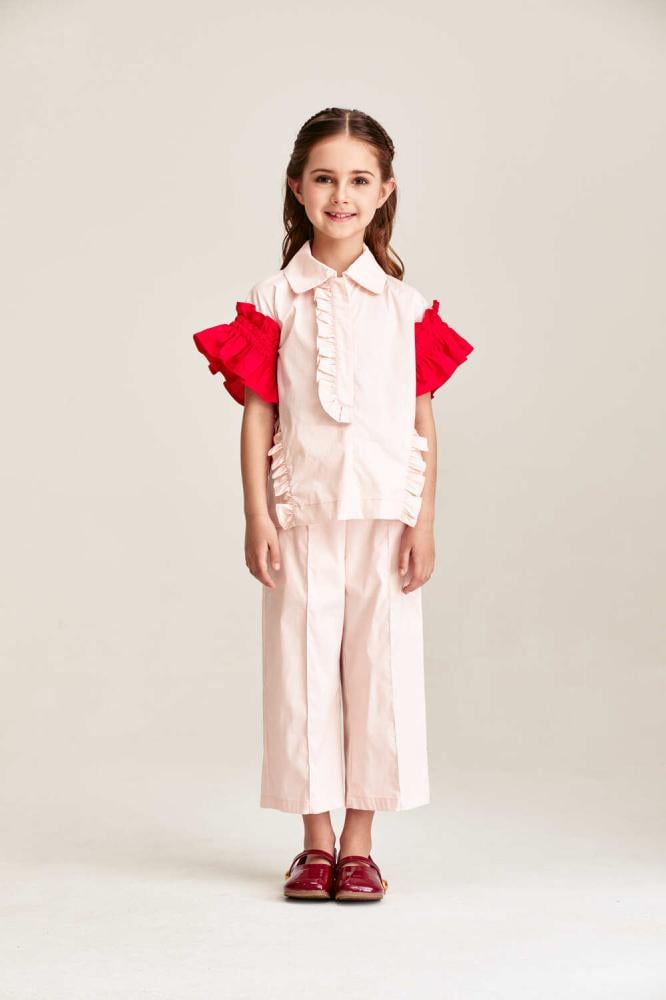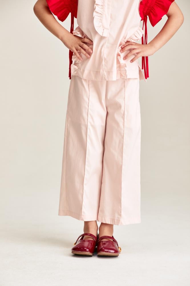 امنحي ابنتك إطلالة أنيقة ومفعمة بالراحة مع هذا البنطلون العصري ،بتصميم بخصر عالي بسحاب مخفي للإغلاق و وبأرجل واسعة