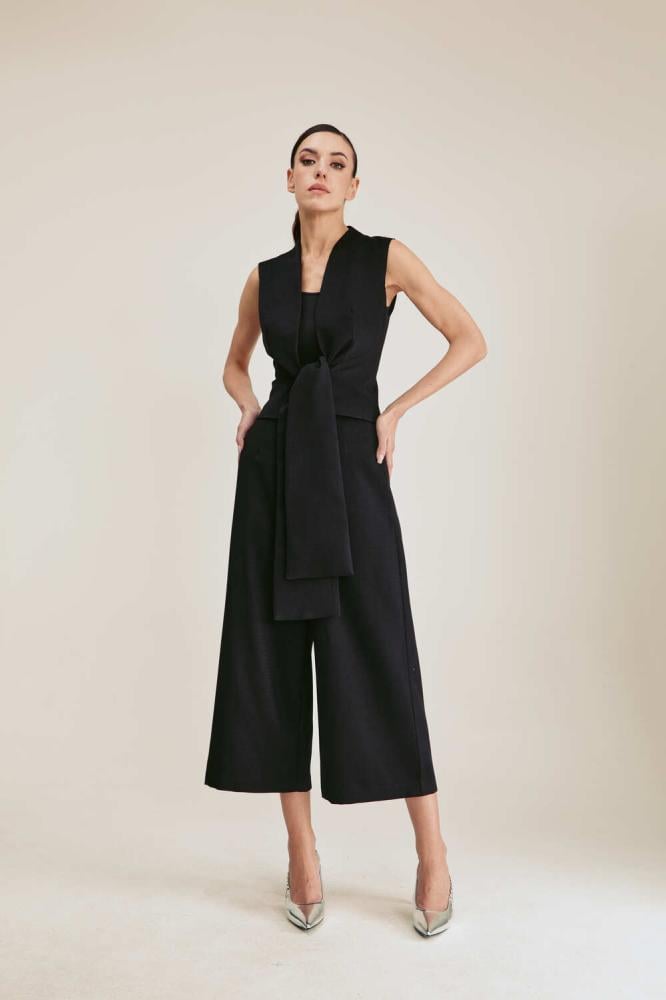 لمظهر راقٍ يجمع بين الأناقة العصرية والكلاسيكية ،تألقي بهذا البنطلون بقصة ناعمة بتصميم بخصر مرتفع وأرجل واسعة ، نسقيه مع جاكيت بلون مماثل لإطلالة عصرية