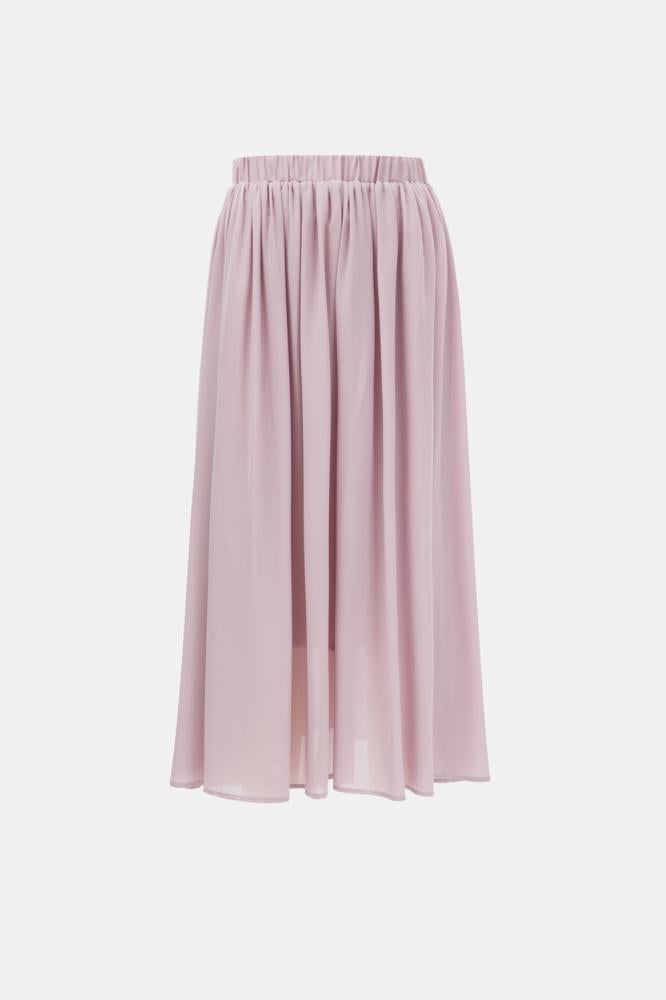 تنورة ماكسي أنيقة بقصة واسعة مزينة بطيّات بسيطة لإطلالة انسيابية راقية. يأتي تصميمها بخصر مطاطي لضمان راحة مثالية. نسقيها مع بلوزة مماثلة لمظهر أنثوي متكامل وأنيق