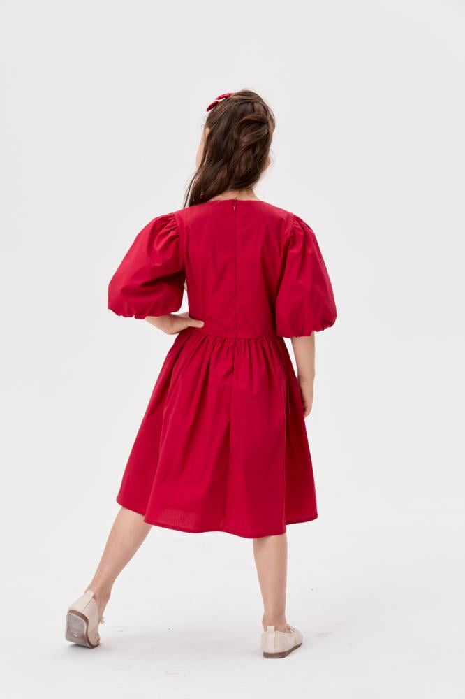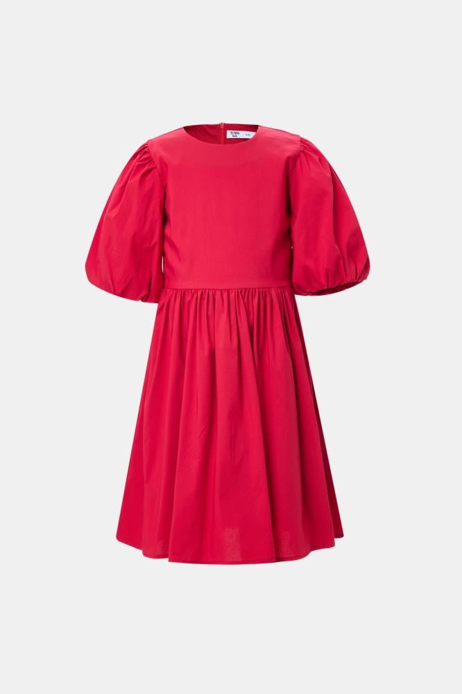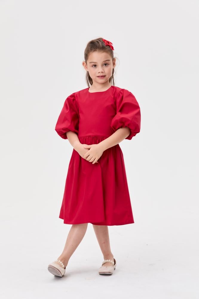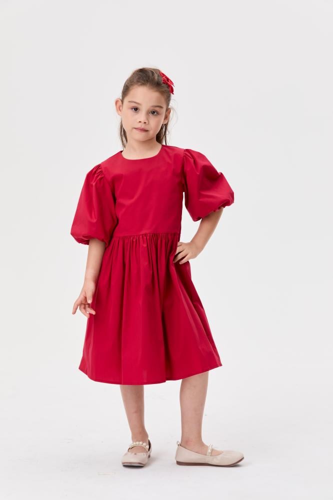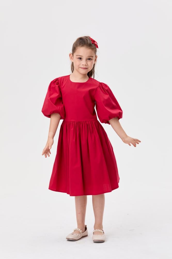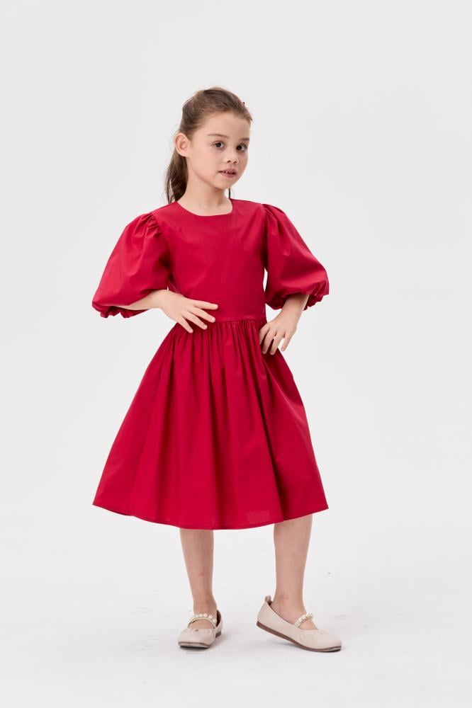 أناقة مرح وراحة مع هذا الفستان الرائع لصغيرتك المميزة. يتميز بياقة مستديرة وبأكمام منفوخة ،بتصميم بقصة فضفاضة