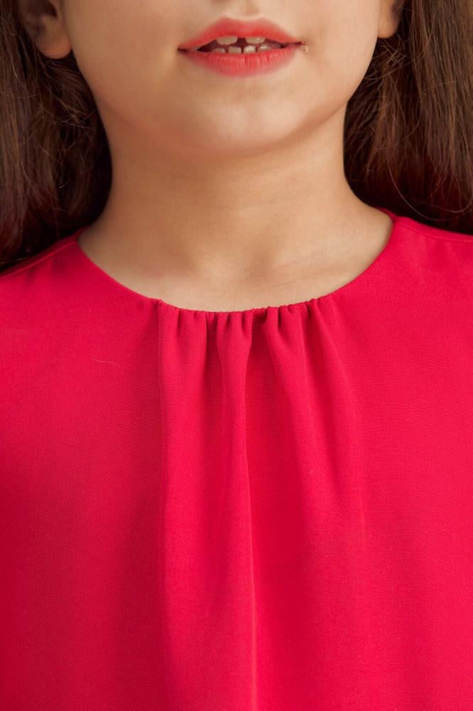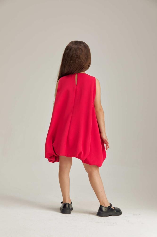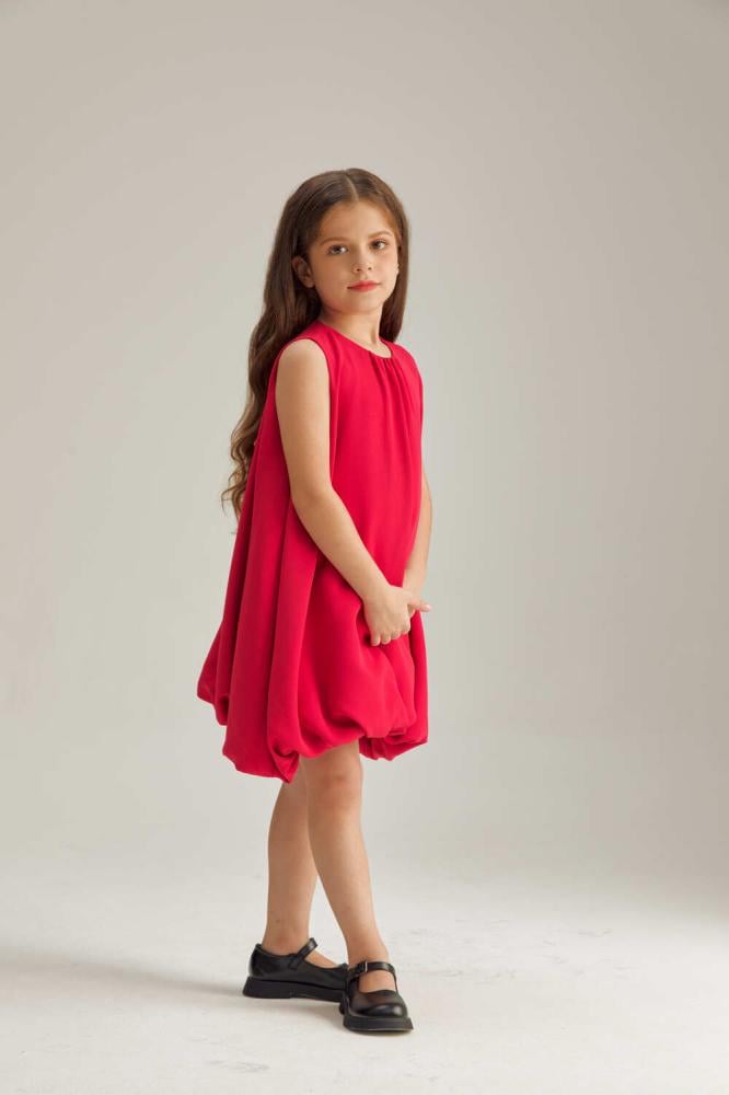 اجعلي صغيرتك تتألق مع هذا الفستان الساحر بلونه الجذاب. مصمم بياقة مستديرة بثنيات بسيطة وبقصة واسعة منفوخة ، يتميز بتصميم أنيق ومريح يجمع بين البساطة والرقي، بينما يضيف اللون الحيوي لمسة من البهجة على إطلالتها