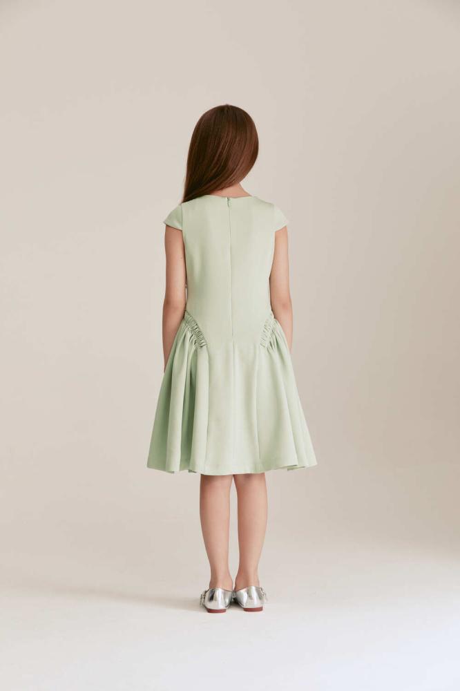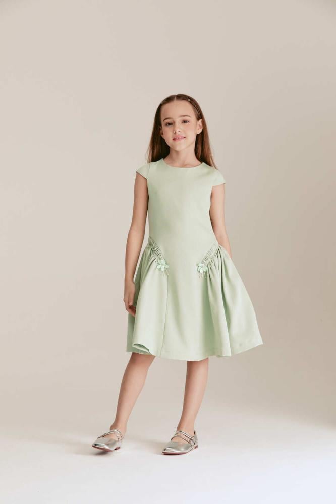 لإطلالة ناعمة تنبض بالأناقة والتفرّد، اختاري لصغيرتكِ هذا الفستان الأخضر المصمم بتفاصيل مزمومة تضيف لمسة من الحيوية والأنوثة في كل حركة، حيث يأتي الفستان بقصّة عصرية ناعمة مع ورود بارزة تضفي عليه طابعًا ساحرًا، فيما تمنحه الأكمام القصيرة والياقة المستديرة توازنًا مثاليًا بين البساطة والتميز، فهو قطعة مثالية للمناسبات الخاصة، و الإطلالات اليومية الأنيقة.