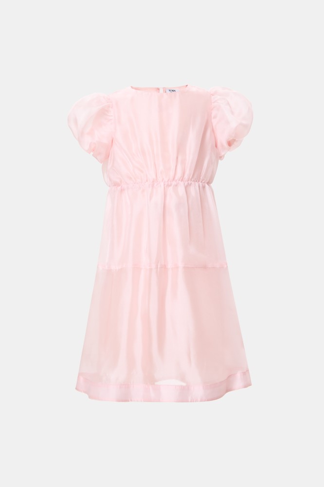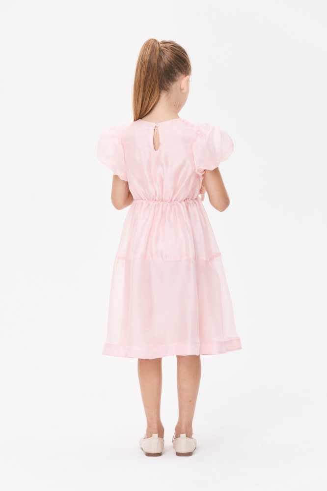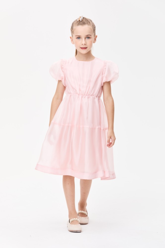 اختاري لصغيرتك هذا الفستان الرائع لإطلالة أنيقة، مصمم بقصة ناعمة بياقة مستديرة وبأكمام منفوخة ويتميز بخصر مطاطي