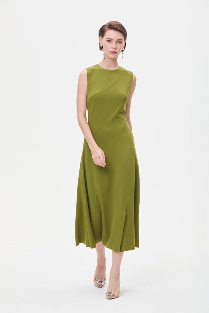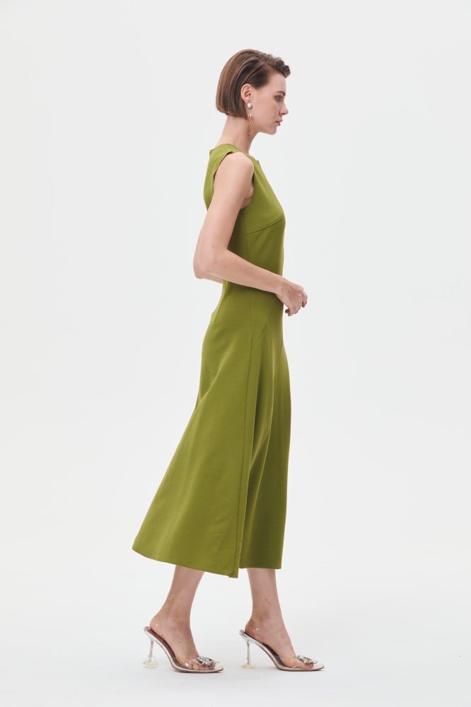 لإطلالة جذابة في المناسبات الراقية تألقي بفستان بقصة تبرز جمال قوامك ، بتصميم بياقة مستديرة وبدون اكمام كما يتميز بقصة على شكل حرف A مزدانة بفتحة من أسفل , نسقيه مع إكسسورات لمظهر مبهر