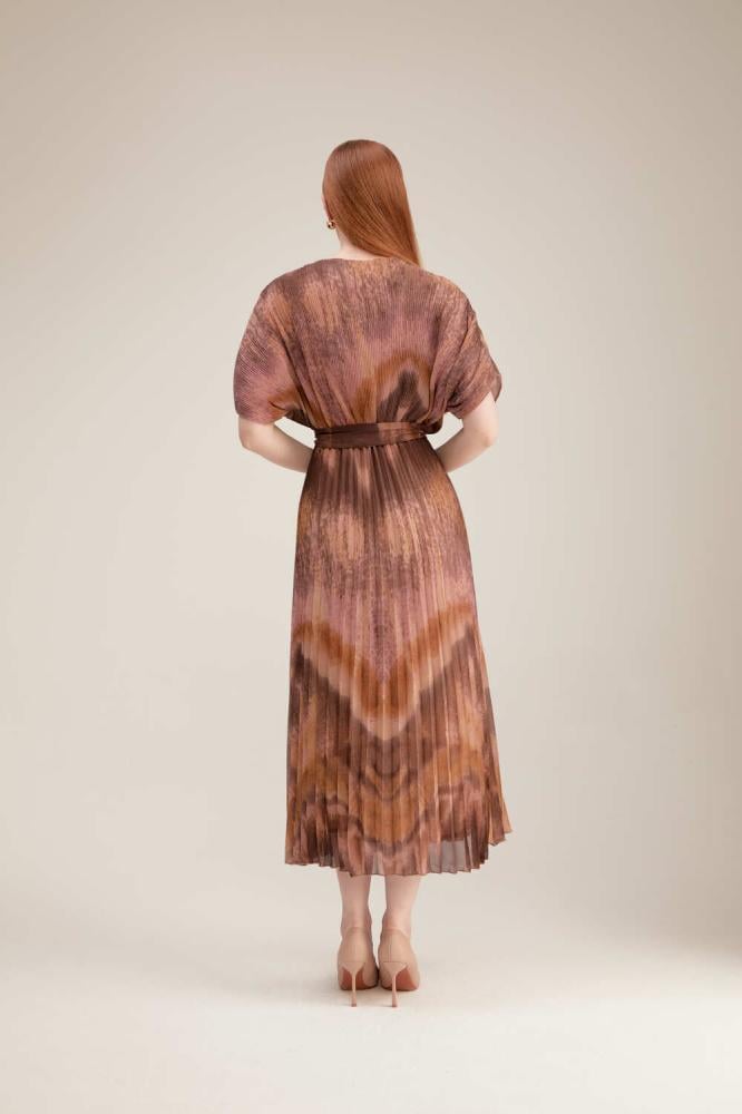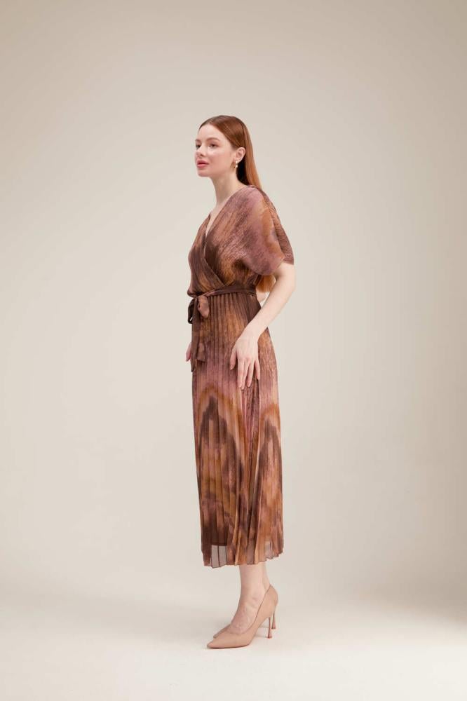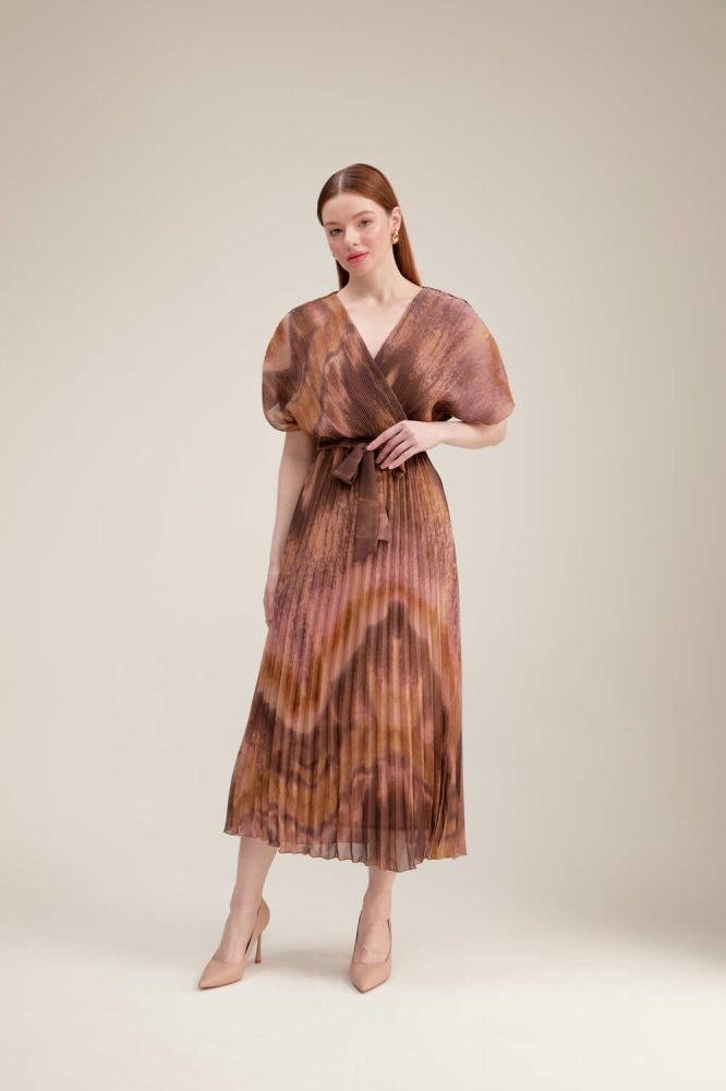 لإطلالة أكثر نعومة بألوان جذابة تناسب مختلف الإطلالات اليومية تألقي بفستان بليسية بياقة لف وبأكمام قصيرة ، يأتي بخصر مطاطي و حزام خصر يضفي لمسة أنثوية جذابة