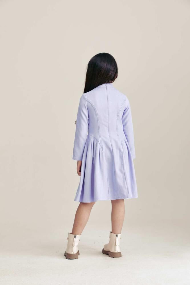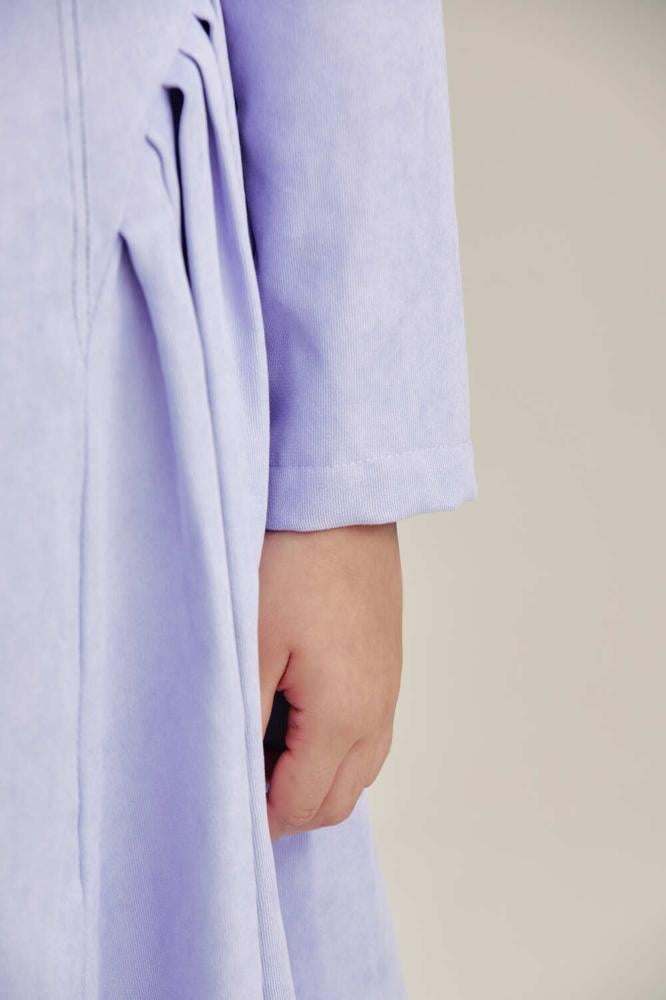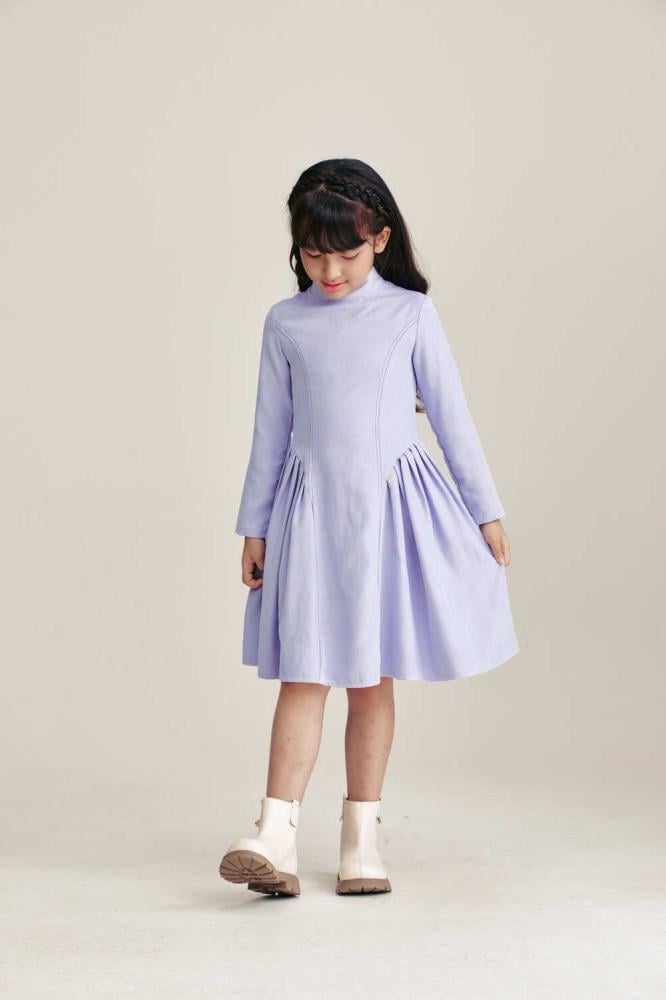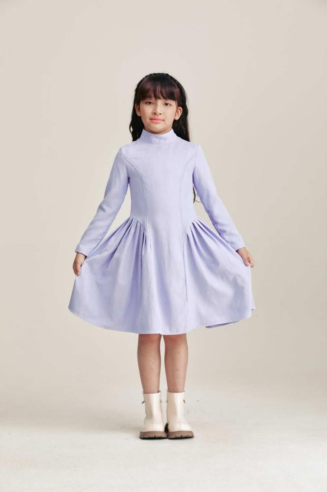 فستان طفولي ساحر بلون بنفسجي ناعم يعكس براءة صغيرتك وجمالها. تصميم واسع بقصة مميزة تمنحها حرية الحركة والراحة في كل لحظة. خيار مثالي للمناسبات الخاصة والإطلالات اليومية الأنيقة.