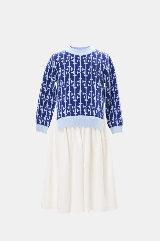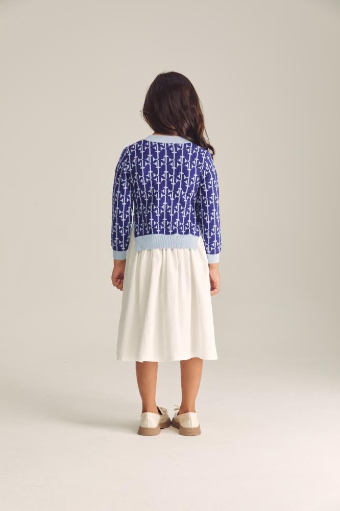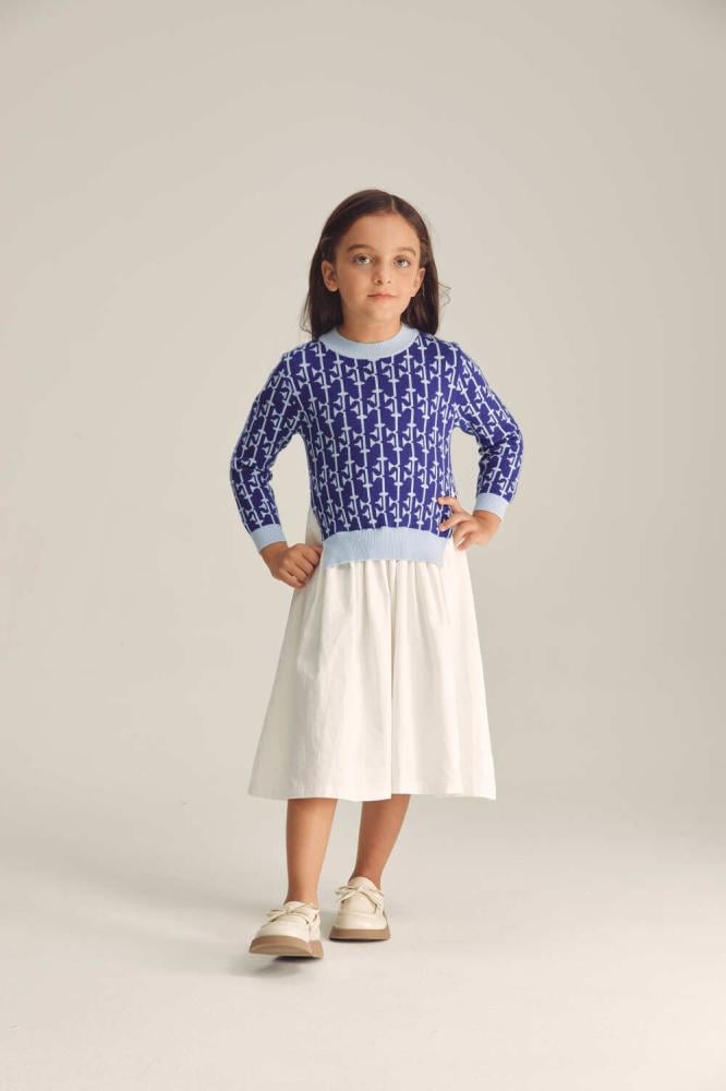 حيث يأتي بتصميم محبوك من الأعلى، ومزين بنقوش تُكسبه مظهر جذاب، كما يوجد بأسفل الفستان تنورة واسعة تمنح طفلتك مرونة والراحة أثناء اللعب.