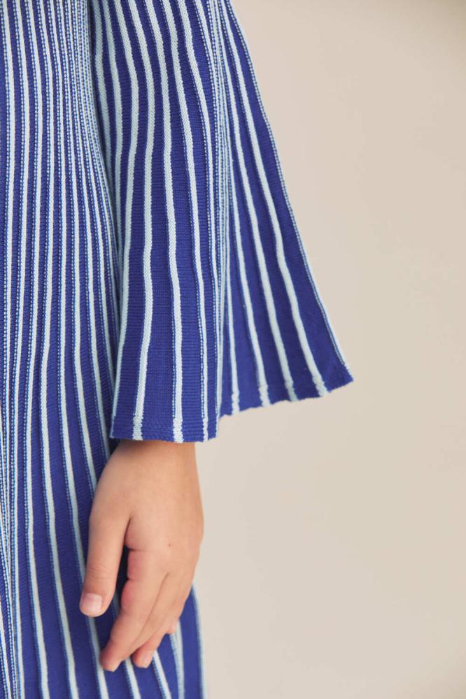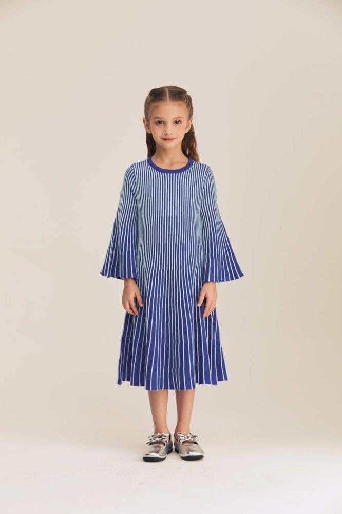 إذا كنتِ تبحثين عن فستان عصري يمنح طفلتك إطلالة أنيقة ويوفر لها الراحة التي تحتاجها، فإن فستان مقلم بأكمام جرس يعد من أفضل خياراتك. يتميز الفستان بتصميم عصري مميز وخامة شتوية من من مجموعة من الأقمشة المتنوعة. تضفي على الفستان فخامة وجاذبية كبيرة بفضل جودتها العالية، كما يضيف لونه وطبعته المقلمة لمسة عصرية تزيد من أناقة طفلتك وتجعلها دومًا متألقة.