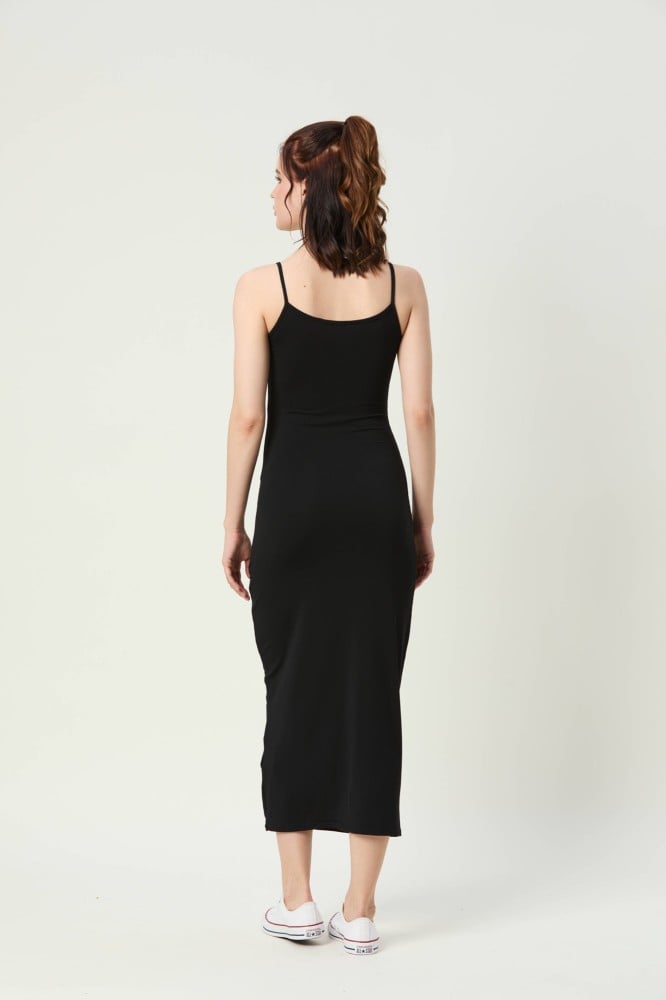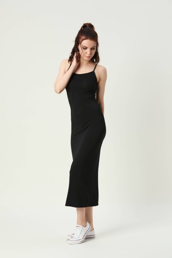 فستان أساسي يناسب مختلف إطلالاتك، بتصميم كلاسيكي وحمالات أكتاف رفيعة وقصة ضيقة