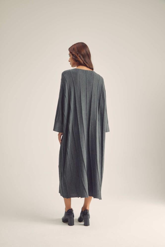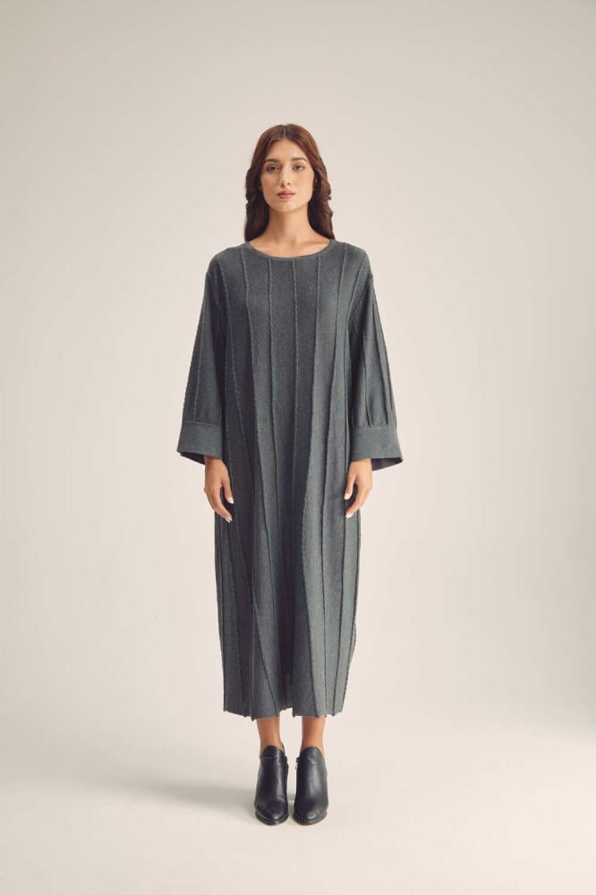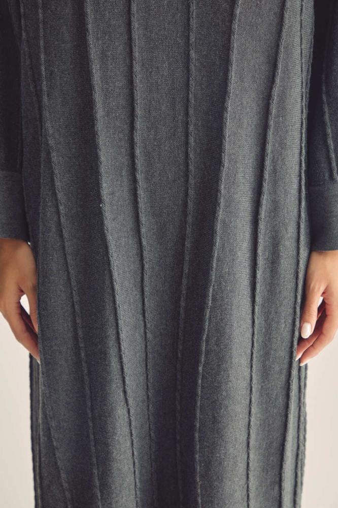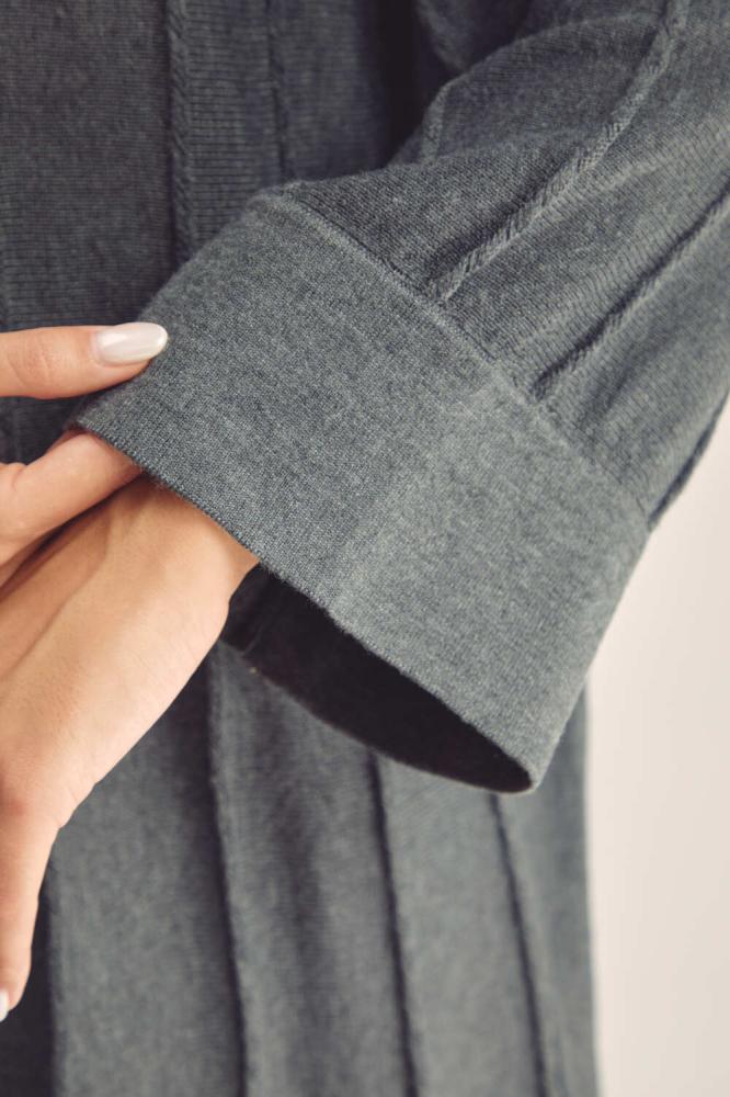 للوك دافئ تألقي بفستان محبوك بقصة الأوفر سايز لارتداء مريح ، وأكمام طويلة لضمان المزيد من الدفء