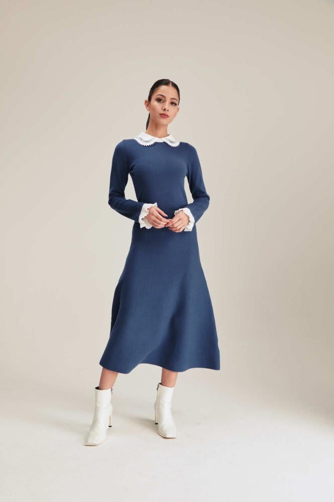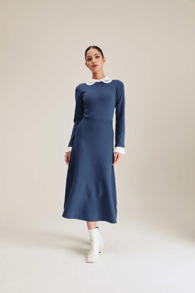 فستان شتوي أنيق بياقة جوبير كلاسيكية وقصة إي لاين