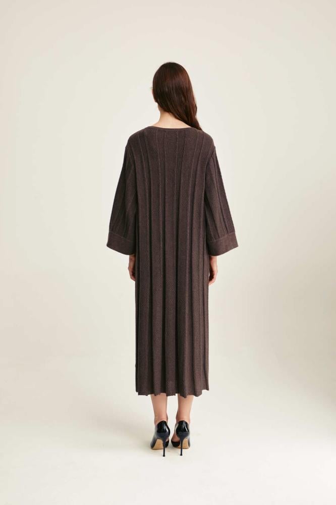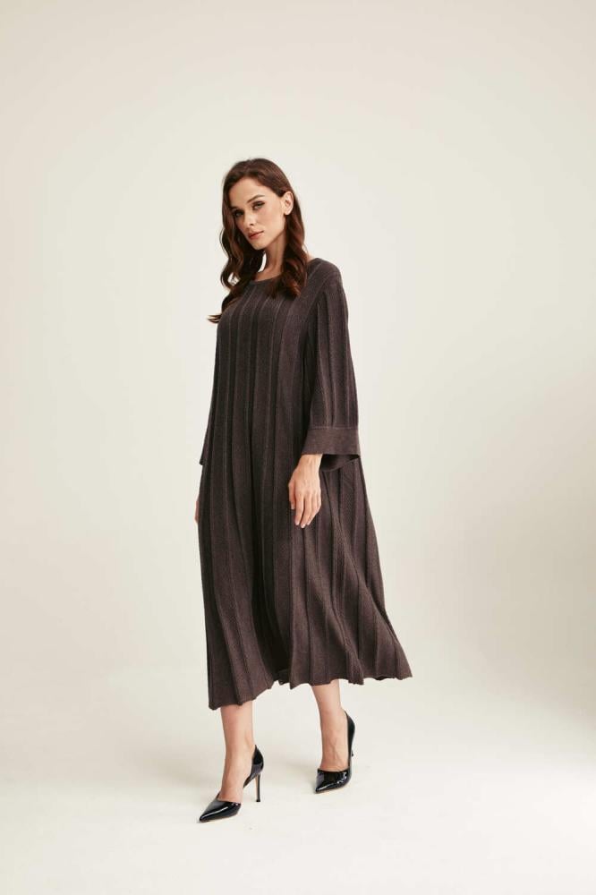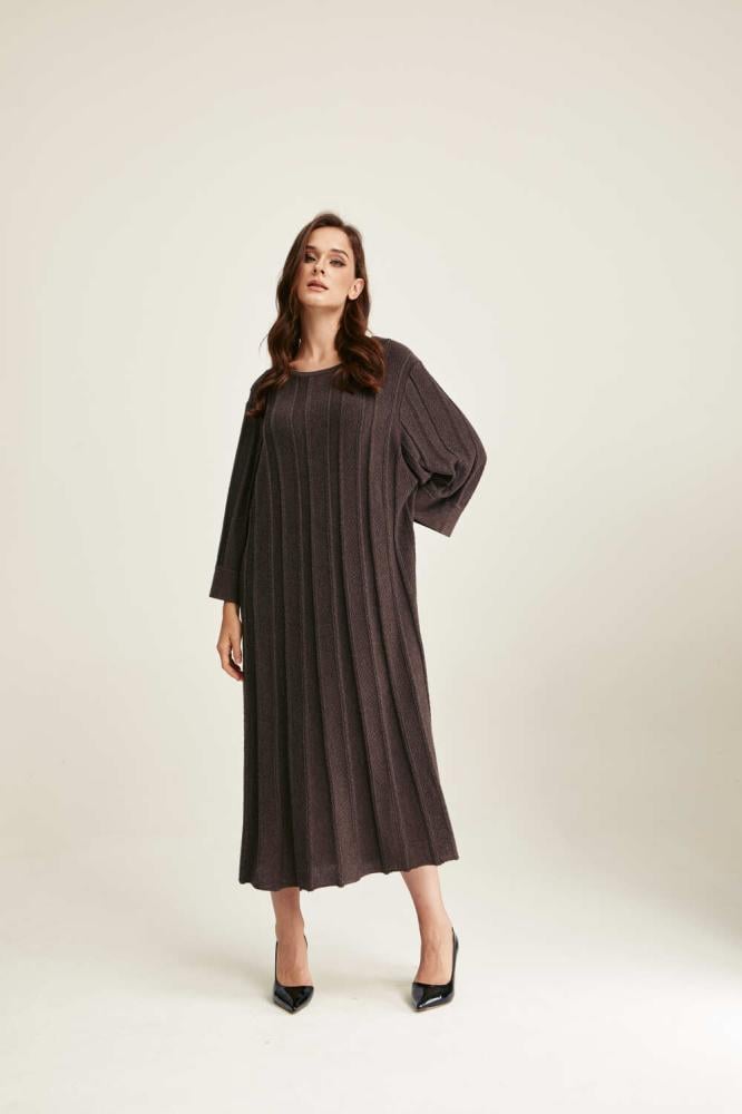 للوك دافئ تألقي بفستان محبوك بقصة الأوفر سايز لارتداء مريح ، وأكمام طويلة لضمان المزيد من الدفء