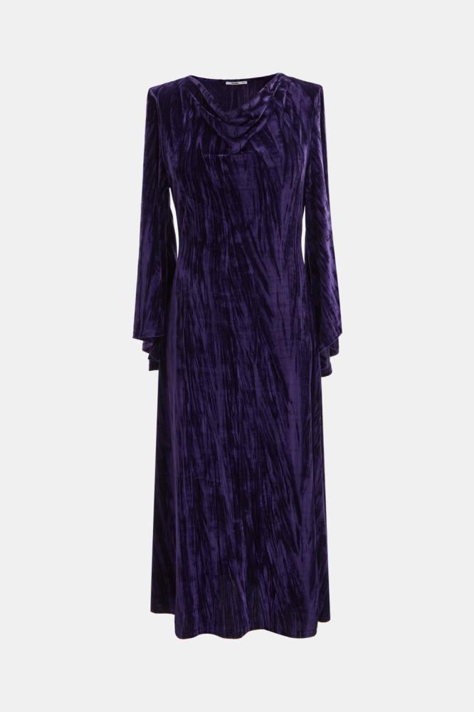 يجمع هذا الفستان التفاصيل الكلاسيكية والتصميم العصري . ويتميز بقصة مفعمة بالأنوثة بلون دافيء. يمكنك تنسيقه مع حذاء بكعب واكسسوارت ذهبية للوك فاخر .