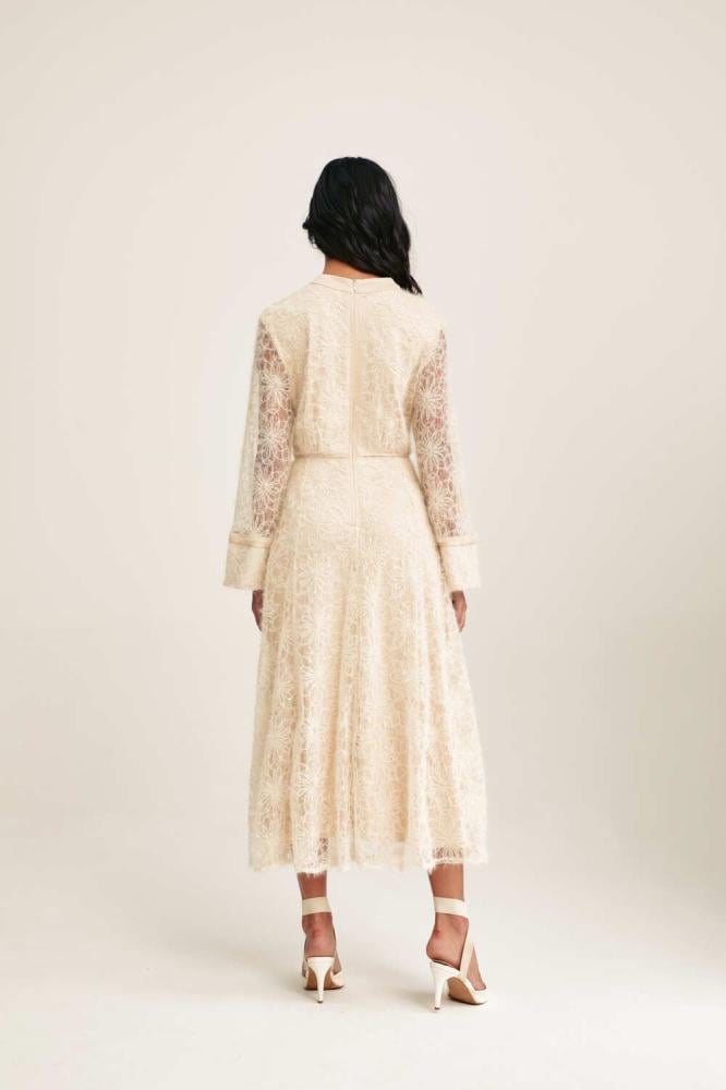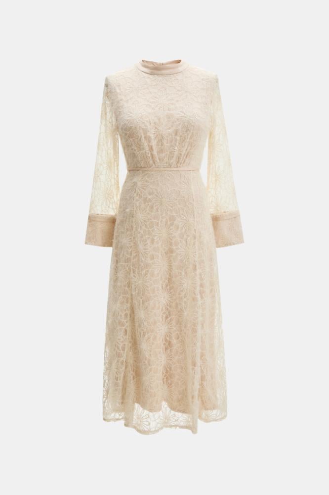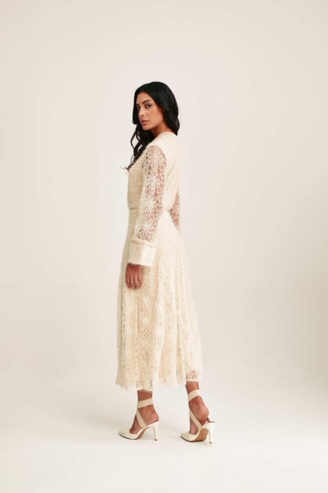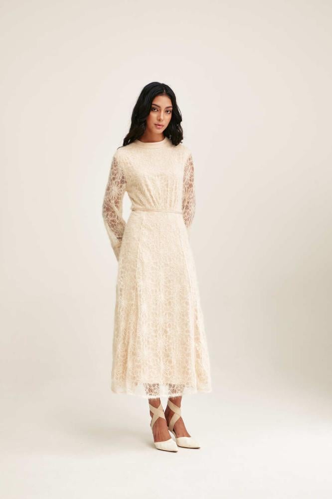 فستان بتصميم كلاسيكي مفعم بالفخامة يضفي لمسة جذابة على إطلالتك. ويأتي بأكمام شفافة تكسبه طابعًا كلاسيكيًا . ويأتي مصنوعًا من قماش مزين بتطريزات موردة بالترتر تضفي عليه لمسة لامعة.