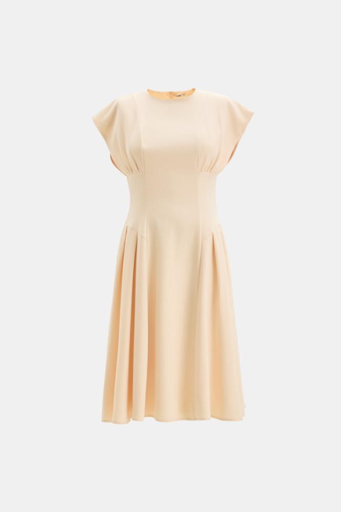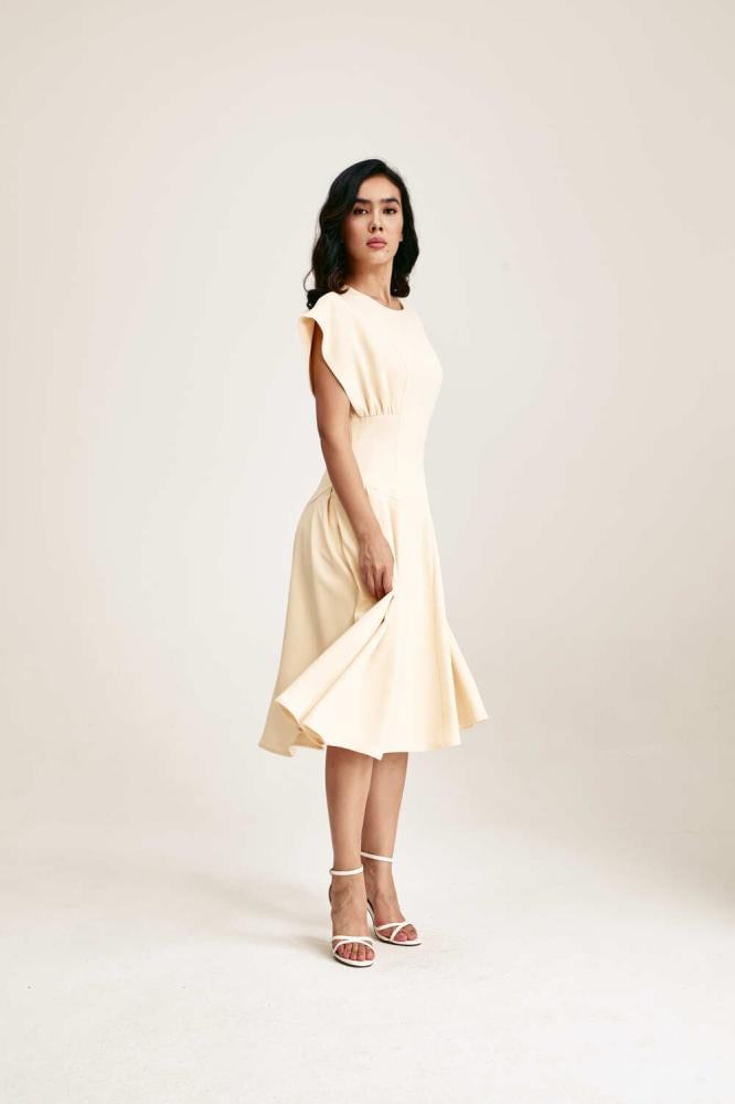 فستان ينبض بالحيوية والأنوثة، بخصرضيق يبرز القوام بأنوثة متناسقة. تكتمل جاذبيته بالكسرات الناعمة التي تضيف لمسة من الحركة والانسيابية، ليمنحك حضورًا آسراً ينبض بالأناقة العصرية!